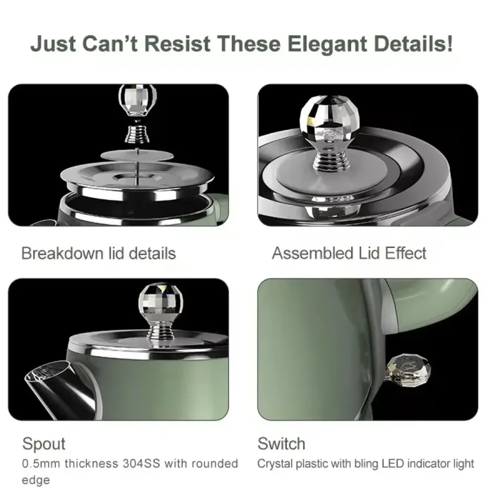 Беспроводная конструкция с поворотом на 360° обеспечивает свободу передвижения, а пылезащитный корпус поддерживает высокую гигиеничность. Этот электрочайник — идеальный выбор для тех, кто ценит удобство, надежность и стиль в одном устройстве!
