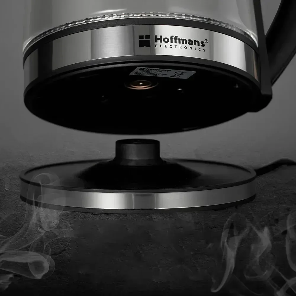 Прозрачный корпус со шкалой позволяет контролировать уровень воды, а подсветка при включении делает процесс наглядным и стильным. Мощность 1800 Вт обеспечивает быстрое кипячение, а скрытый нагревательный элемент облегчает уход за прибором. Автоотключение и защита от перегрева обеспечивают безопасное использование. Hoffmans HM-2515 станет надёжным помощником для быстрого приготовления напитков в любой ситуации.