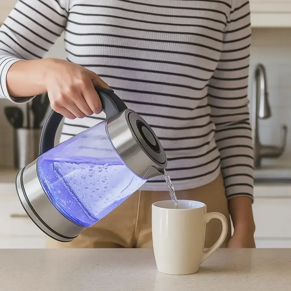Прозрачное стекло корпуса позволяет видеть уровень жидкости и цвет напитка, а подсветка при включении делает процесс наглядным и удобным. Мощность 2000 Вт обеспечивает быстрый нагрев, а автоотключение и защита от перегрева гарантируют безопасное использование. Все элементы легко снимаются для мытья, что делает уход простым. Hoffmans HM-2556 станет надежным помощником для быстрого приготовления горячих напитков в любых условиях.