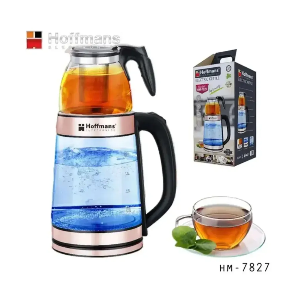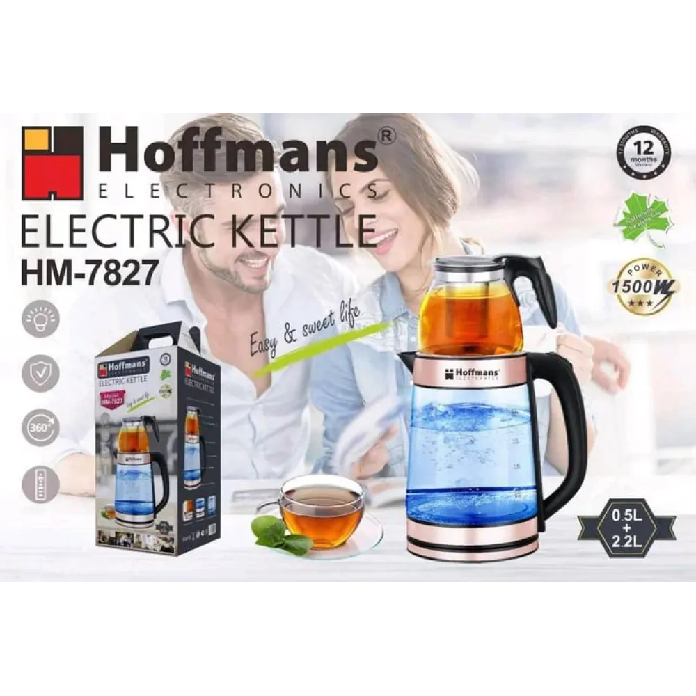 Электрочайник Hoffmans HM-7827 1800W • Стеклянный чайник с заварником 2,2 л + 0,5 л для быстрых напитков