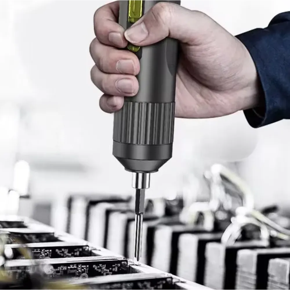 С набором инструментов в кейсе на 33 предмета и электроотвёрткой ремонт станет быстрым и простым делом. Этот универсальный комплект включает в себя всё необходимое для монтажа, демонтажа и ремонта, от разнообразных бит и головок до гибкого удлинителя и удлинённых бит. В компактном кейсе легко хранить и переносить инструменты, а эргономичный дизайн отвертки обеспечивает комфортное использование даже при длительной работе.
