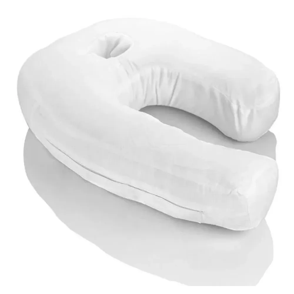 - Имеет оригинальный дизайн в виде подковы и специальную выемку для уха, чтобы обеспечить правильное положение тела во время сна, поддержать шею и плечи. Голова не давит на ухо и Вы не испытываете дискомфорт.