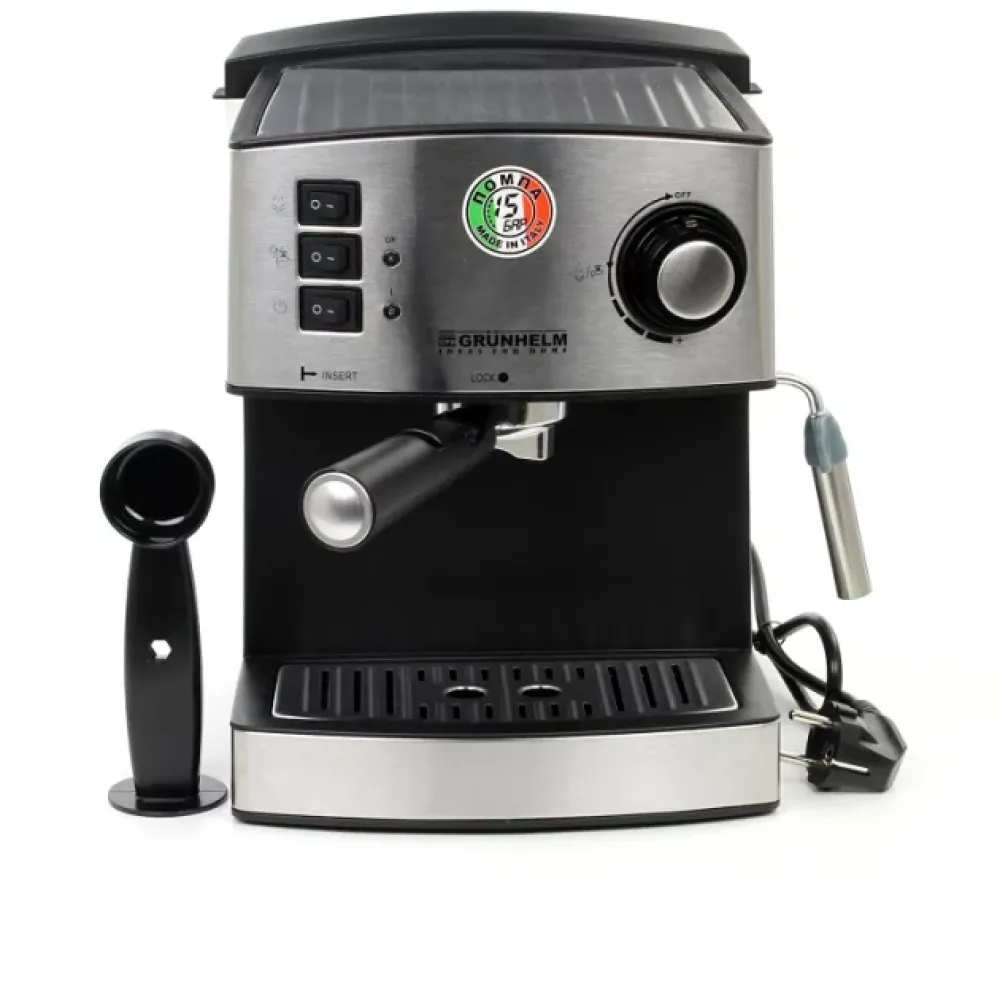 Эспрессо кофемашина Grunhelm GEC15 с интегрированным капучинатором позволит приготовить вкуснейший кофе, не выходя из дома! Латте, капучино или экспессо – выбирайте Ваш любимый напиток и наслаждайтесь