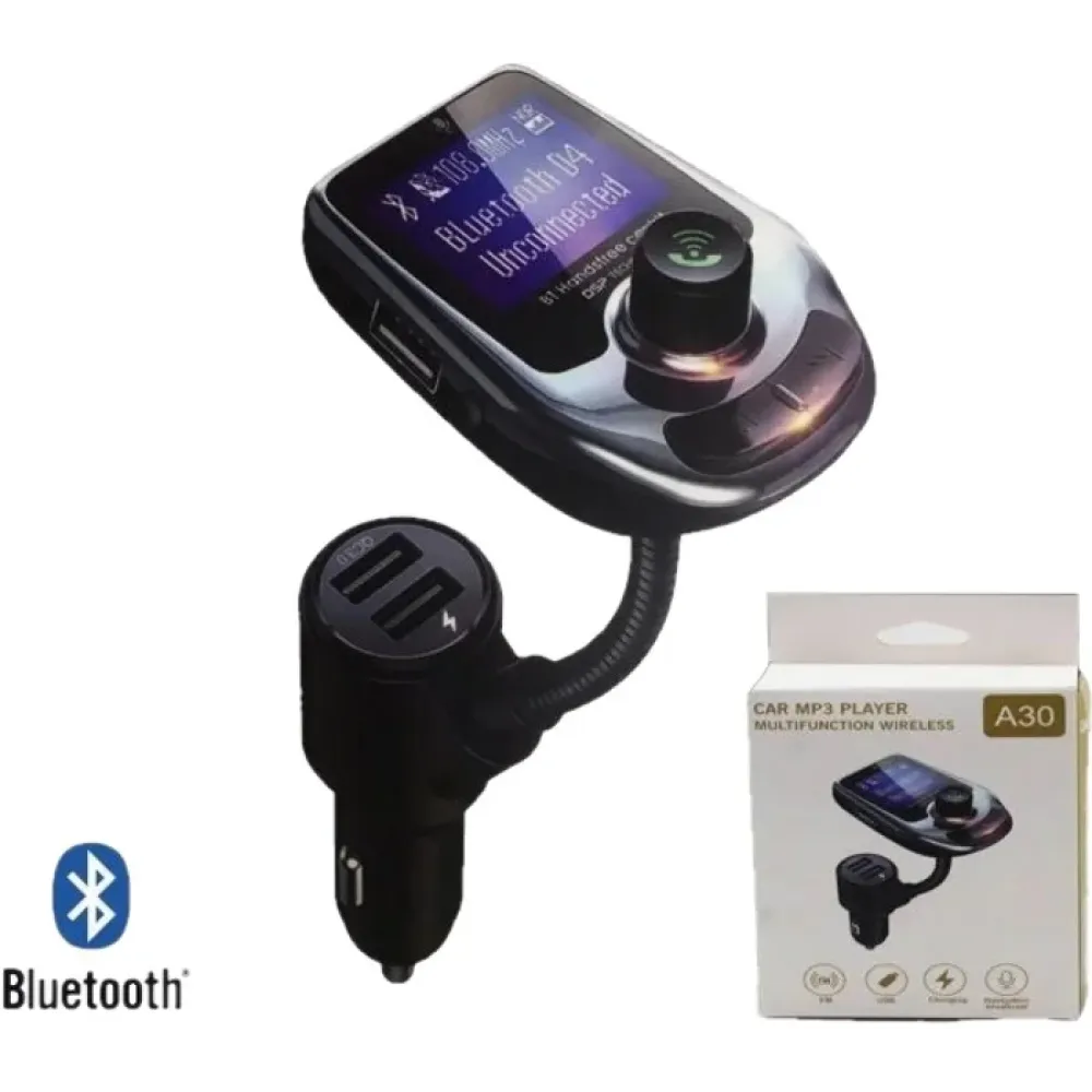 FM-трансмиттер — хорошая альтернатива, когда нет возможности приобрести магнитолу. Форматы воспроизведения: MP3, WMA. Предназначено устройство для использования в транспортных средствах с питанием бортовой сети 12-24 B. FM-трансмиттер A30 BT оборудован небольшим информативным экраном 1.4", который имеет приятную подсветку. Это добавляет комфорта при использовании в темное время суток.