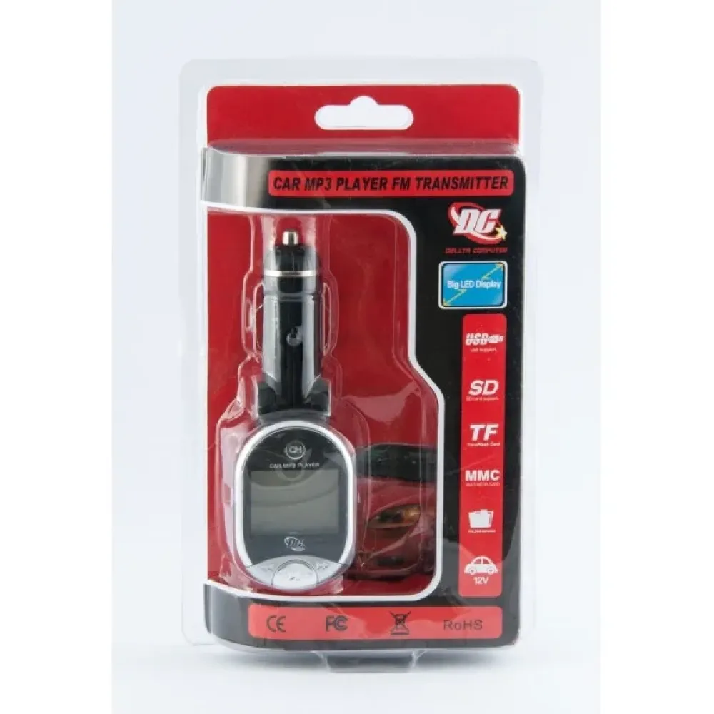 Характеристики: LED дисплей; Поддержка TF|SD|MMC card и USB накопителей до 16гб.; 206 предустановленных FM каналов (87,5-108,0 MHz); Питание 12V; Поддержка проигрывания из папки; 4 loop modes; Память последней частоты, песни и громкости. Комплектация: Fm трансмиттер; Пульт ДУ с элементом питания.