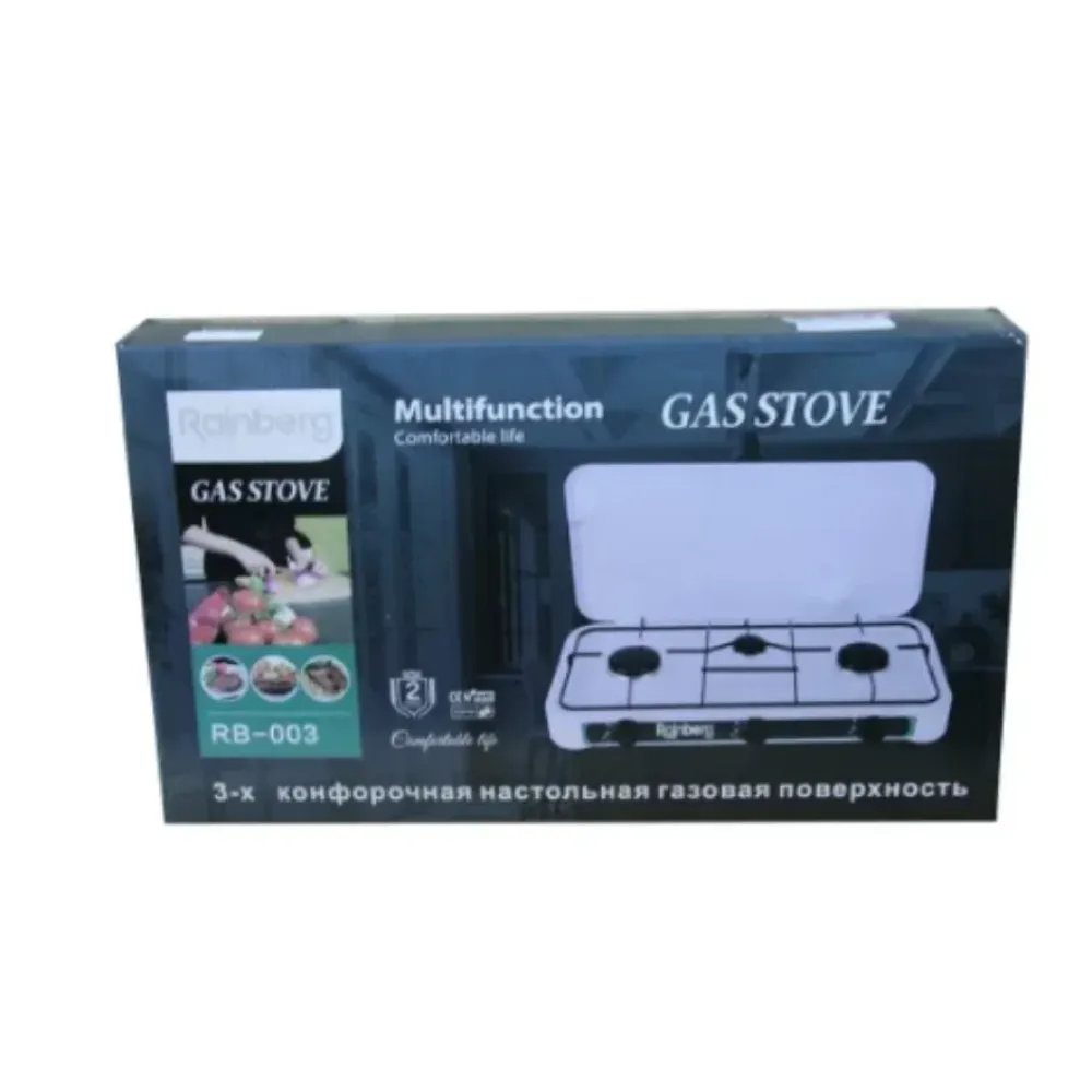 Газовая плита Rainberg RB-003 на три конфорки ∙ Трехконфорочная настольная плитка – таганок с крышкой Белая экономична и надёжна в работе, удобна и проста в обслуживании!