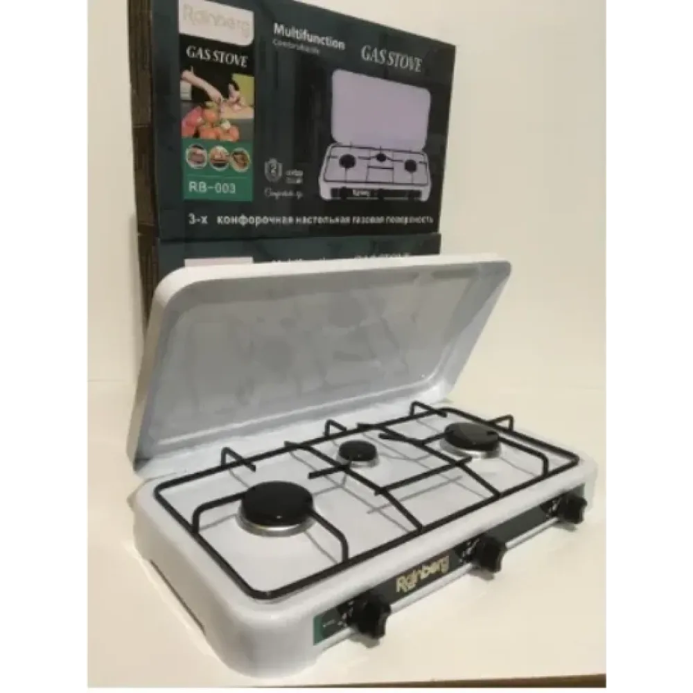 | Заказывайте Газовую плиту Rainberg RB-003 на три конфорки ∙ Трехконфорочную настольную плитку – таганок с крышкой Белую |