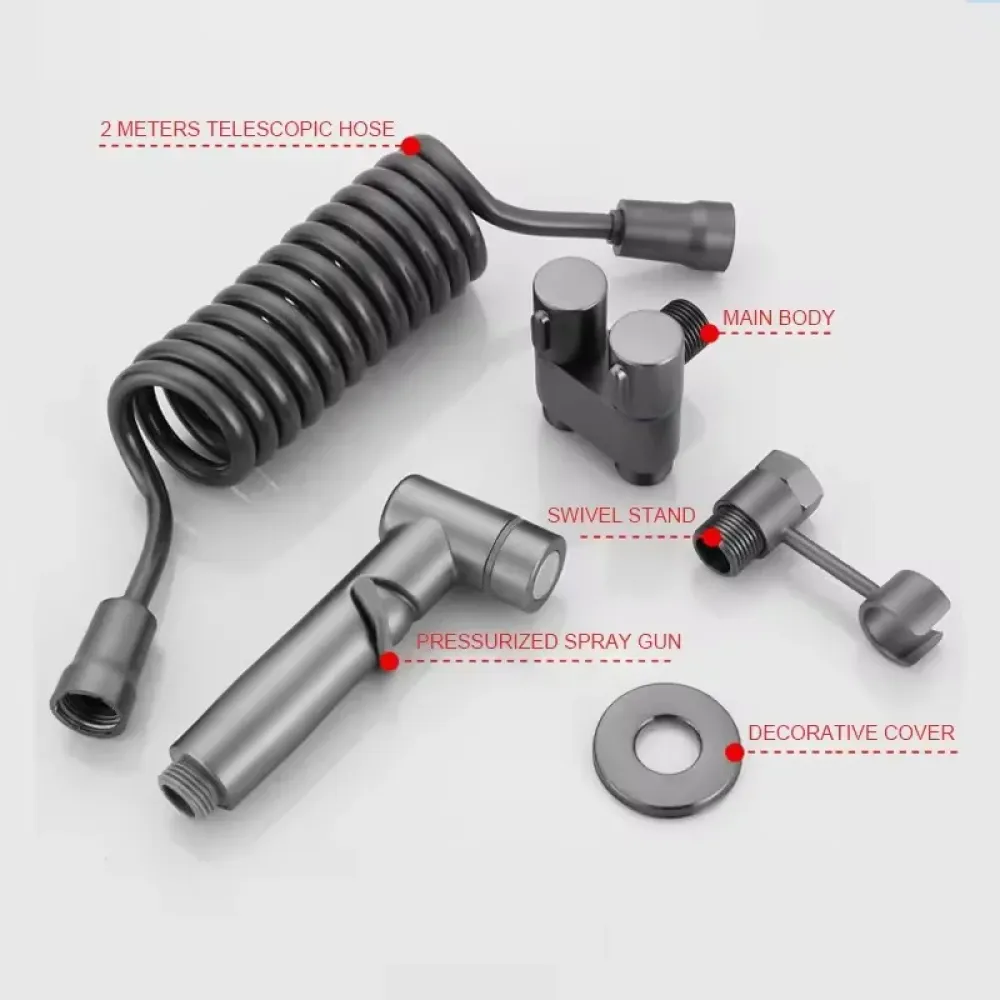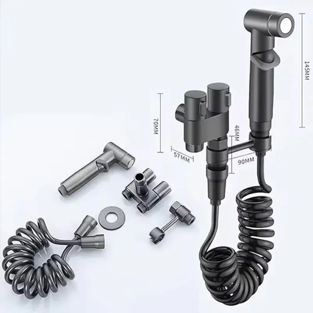 Повысьте уровень личной гигиены и комфорта с нашим набором для биде! Этот элегантный набор серебристого цвета включает в себя все необходимое для безупречного ухода: лейка для биде с эргономичным дизайном обеспечивает удобное использование и мягкий поток воды, который можно легко регулировать. Держатель надежно фиксирует лейку в удобном для вас месте, а двойной кран позволяет быстро переключаться между обычным режимом и режимом биде. Гибкий и длинный шланг обеспечивает максимальную свободу движений, делая использование системы простым и комфортным.