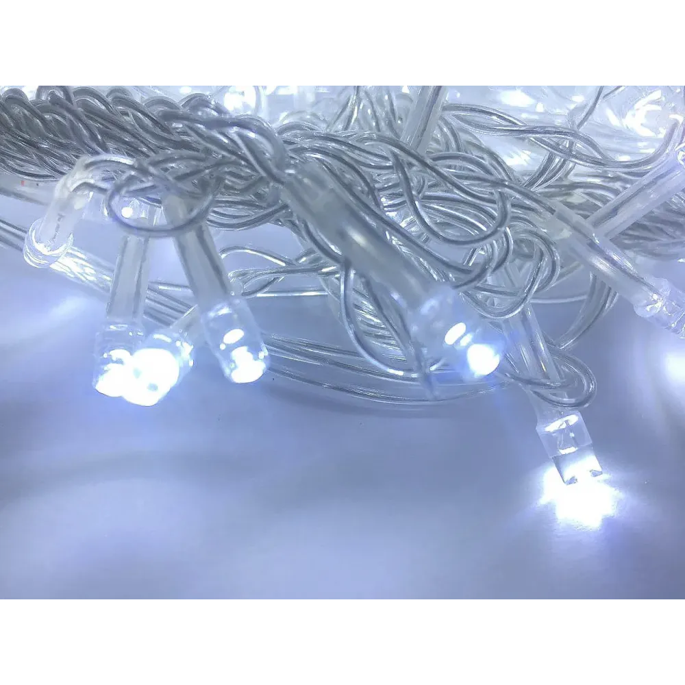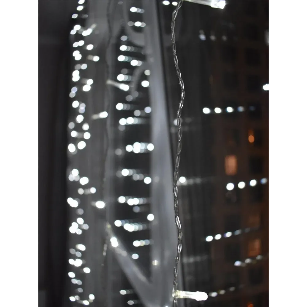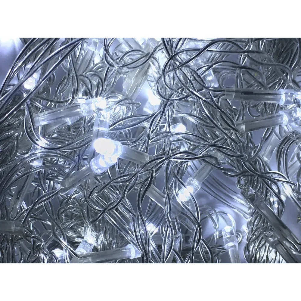 Светодиодная гирлянда LED (ШТОРА) на прозрачном проводе, представляющая собой-гибкий горизонтальный шнур (3м), к которому через определенные промежутки крепятся вертикальные нити (2 м) со светодиодами. Гирлянда LED (ШТОРА) подключается к сети 220 В напрямую. Гирлянда LED (ШТОРА) имеет очень большой ресурс работы, высокое качество, яркие и насыщенные цвета. Цвет свечения: холодный белый. Отличительной чертой гирлянды LED (ШТОРА), это ее форма. На вид это свисающие нити, на которых закреплены светодиод