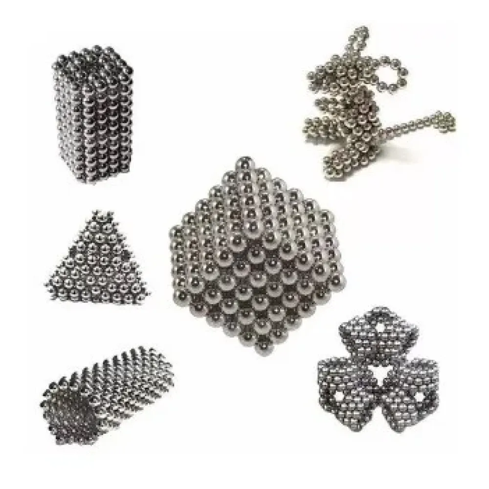 Неокубик состоит из 216-ти сильно намагниченых шариков из сплава Nd14Fe21B( неодим является редкоземельным металлом, и по своим физическим свойствам таков, что сохраняет свои магнитные свойства в течение длительного времени); с намагниченостью N38, диаметром 4 мм, которые можно сложить в любую фигуру или узор, начиная от классических форм вроде куба, пирамиды, шара и т.д., заканчивая разнообразными узорами, которые Вы сами придумаете.