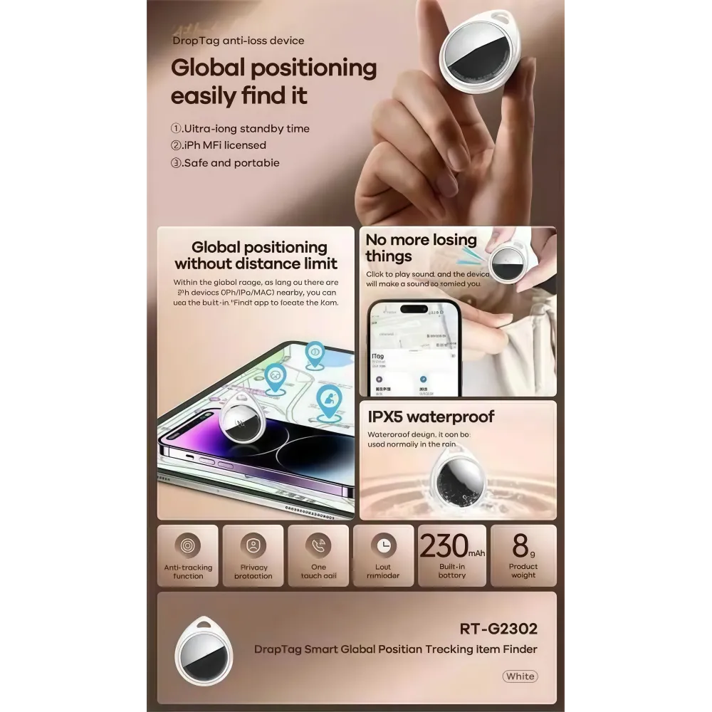 GPS-трекер Find My HUTHUR TAG — это надёжное решение для тех, кто хочет всегда знать, где находятся его вещи или питомцы. Компактный и лёгкий брелок синхронизируется с приложением Find My, обеспечивая точное определение местоположения в режиме реального времени. Благодаря прочному корпусу и влагозащите вы можете использовать его дома, на улице, в поездках или прогулках с животными.