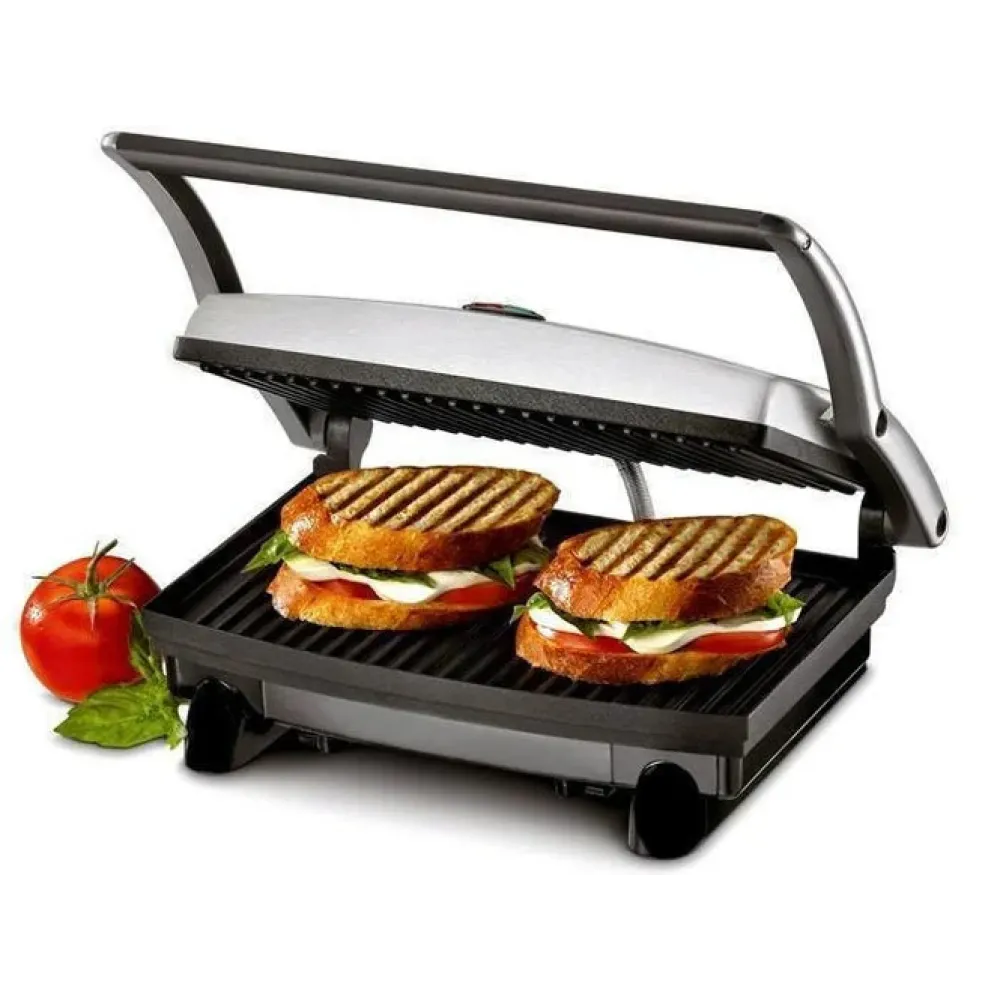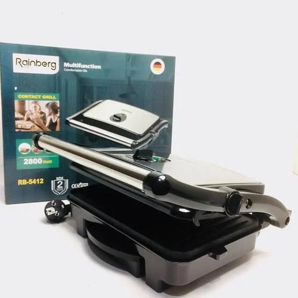Гриль прижимной Rainberg RB-5412 с ручкой индикатором нагрева 2800 Вт ∙ Съемный поддон для жира ∙ Нержавеющая сталь с антипригарным покрытием