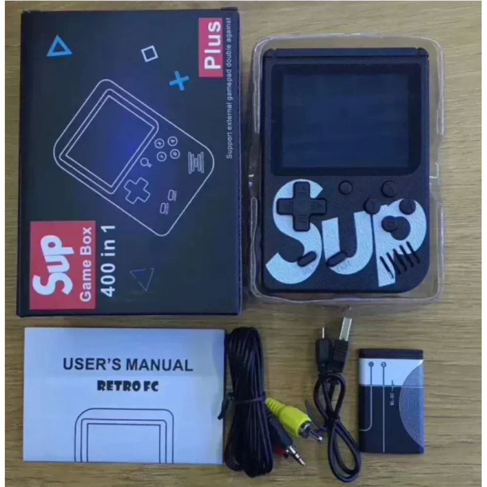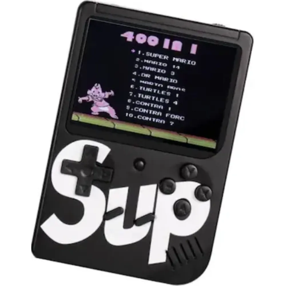 Новинка, которая стала ХИТОМ – портативная приставка, с 400 предустановленными играми нашего детства: Супер Марио, Танчики, Нинзя Черепашки, Чип и дейл, Контра и многое другое.Портативная 8-ми битная игровая ретро консоль Оснащенная цветным 3'дюймовым TFT с разрешением 320*240. SUP Game Box имеет 400 встроенных игр, которые заставят вас вернутся назад в детство, во времена Супер Марио и Танков 1990. Аккумулятор емкостью 1020 mAh, рассчитанный до 10 часов непрерывной игры, а так же вы можете подключить приставку к телевизору с помощью AV кабеля и наслаждаться играми на большом экране. Приставка имеет небольшие размеры, поэтому вы всегда сможете брать ее с собой в поездки.