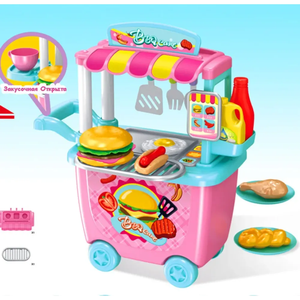 Ваше чадо сможет угостить и даже "продать" бургер, хот-дог, куриную ножу, яичницу, а ещё и добавить соус по Вашему желанию.