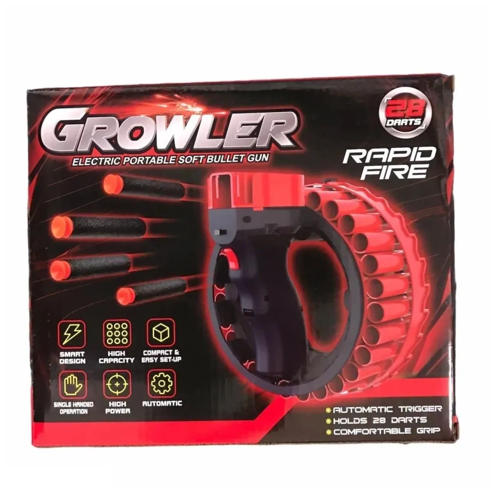 Игрушечное оружие автоматический Бластер пулемет Growler H01 28 зарядов, работает от аккумулятора