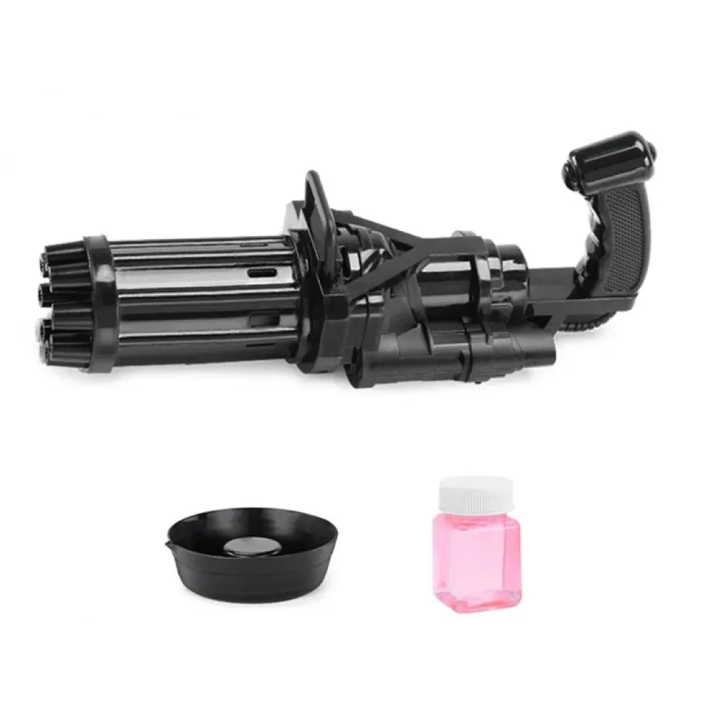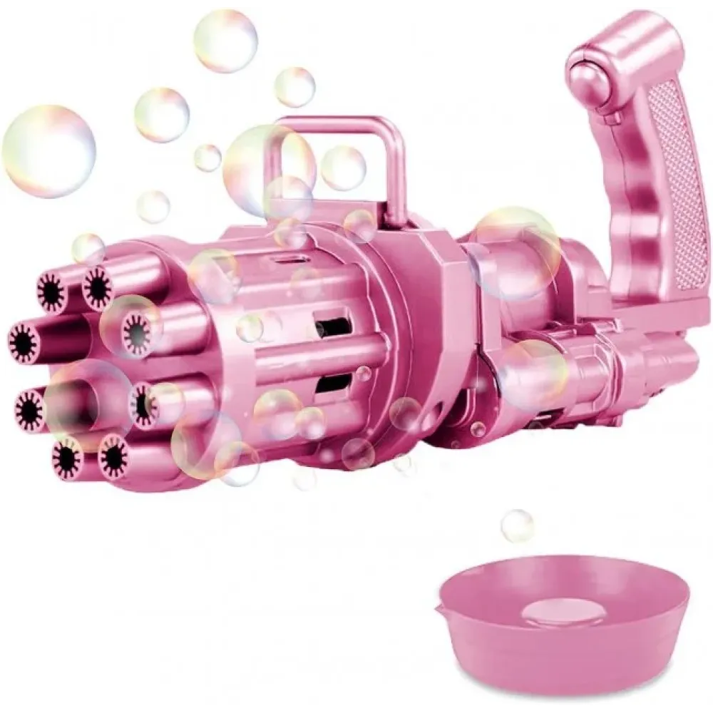 Подарит Вам и Вашим детям незабываемое праздничное настроение, т.к. больше не нужно каждый раз окунать специальную палочку во флакон с мыльной водой - достаточно один раз окунуть ствол игрушки в специальную чашу и готово - Пулеметная очередь из огромного количества пузыриков заполнит всё вокруг