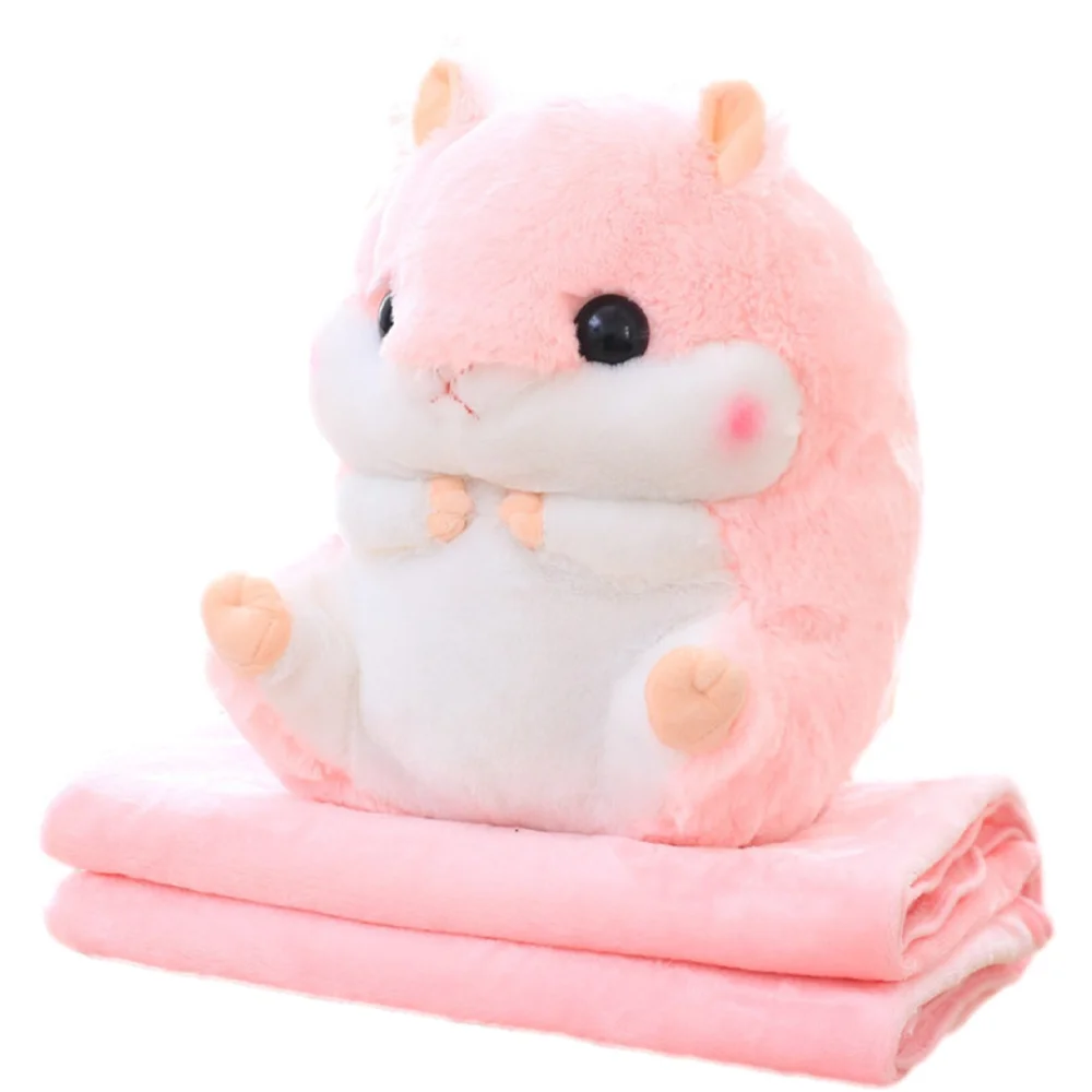 Игрушка-подушка Хомяк с пледом 3 в 1 ∙ Мягкая игрушка + Плед + Подушка Хомячок, 100 x 100 см ∙ Розовый / голубой / коричневый / серый
