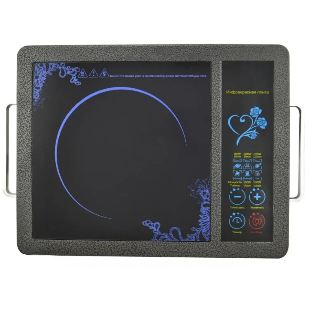 В отличии от индукционной плиты, инфракрасной не нужна специальная посуда. Вы можете использовать любую жаропрочную посуду с плоским дном. Плита индукционная Domotec MS-5842 сделана со стеклокерамической варочной панелью для быстрого разогрева, приготовления разнообразных блюд и с функцией барбекю. Также есть таймер, с помощью которого вы можете выставлять нужное время, тем самым регулировать работу плиты. Кнопки управления сенсорные и находятся на передней панели.