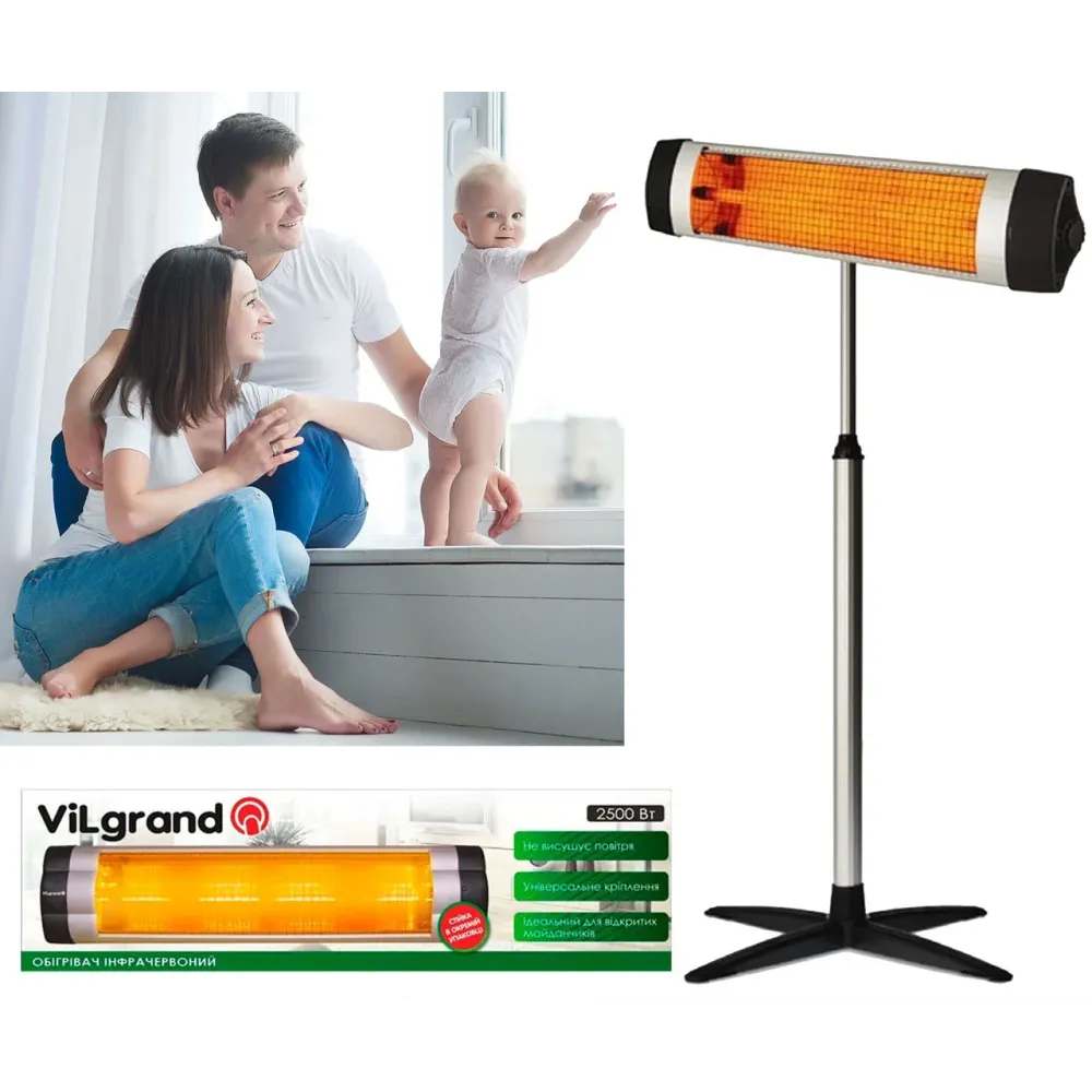 Инфракрасный обогреватель ViLgrand VQ2502 (2500Вт) + ножка в комплект, используется для зонального и общего обогрева помещений всех типов и площадей.