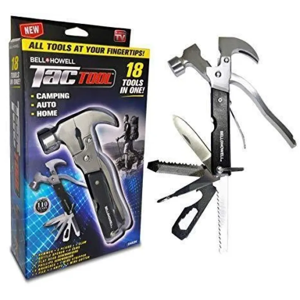 Многофункциональный молоток-гвоздодер BELL+HOWELL Tac Tool 18 in 1незаменим в походных условиях,в пути или на даче когда ящика с ручным инструментом нет под руками.Выполненный из нержавеющей стали прочен и легок,устоичив к агрессивной среде,корозии.