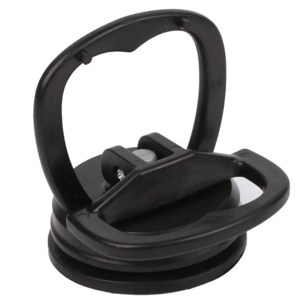 Инструмент для вытягивания автомобильных вмятин представляет собой крупную присоску на пластиковом основании с 2-мя ручками сверху. Присоска для удаления вмятин работает достаточно просто.