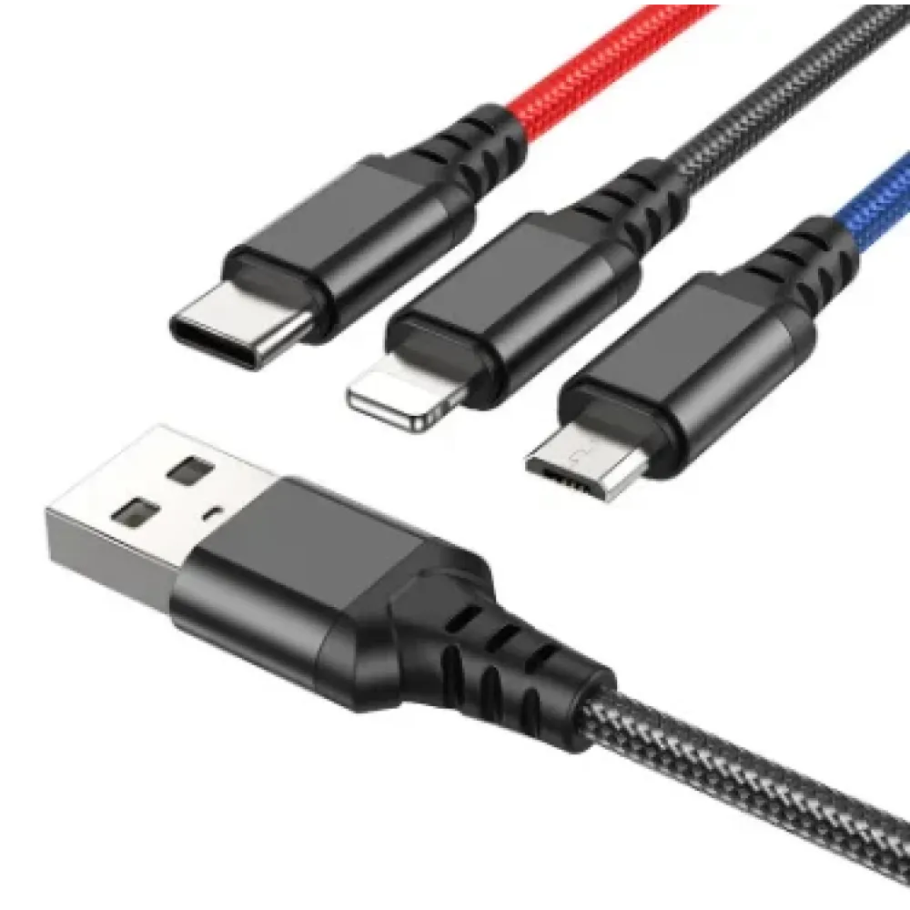 Кабель HOCO X76 Combo 3-in-1 Lightning / Micro-USB / Type-C ∙ Зарядный универсальный USB провод шнур 3 в 1 для зарядки Android / iPhone