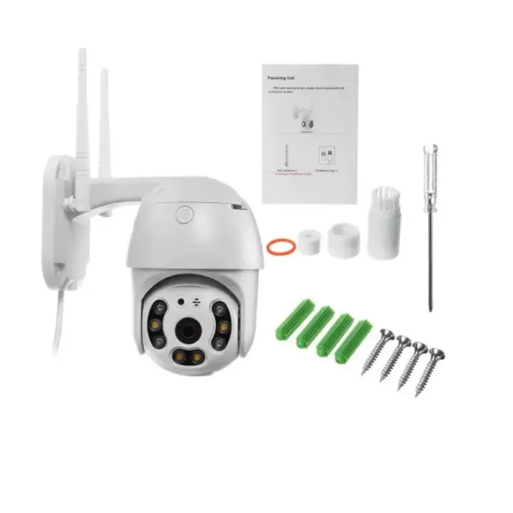 Камера поддерживает подключение по Wi-Fi, что позволяет вести наблюдение через смартфон или компьютер в реальном времени. Высокое разрешение 4MP обеспечивает чёткое и детализированное изображение, а встроенная инфракрасная подсветка гарантирует видимость в темноте. Функция детекции движения с уведомлениями на телефон повышает безопасность и удобство использования.