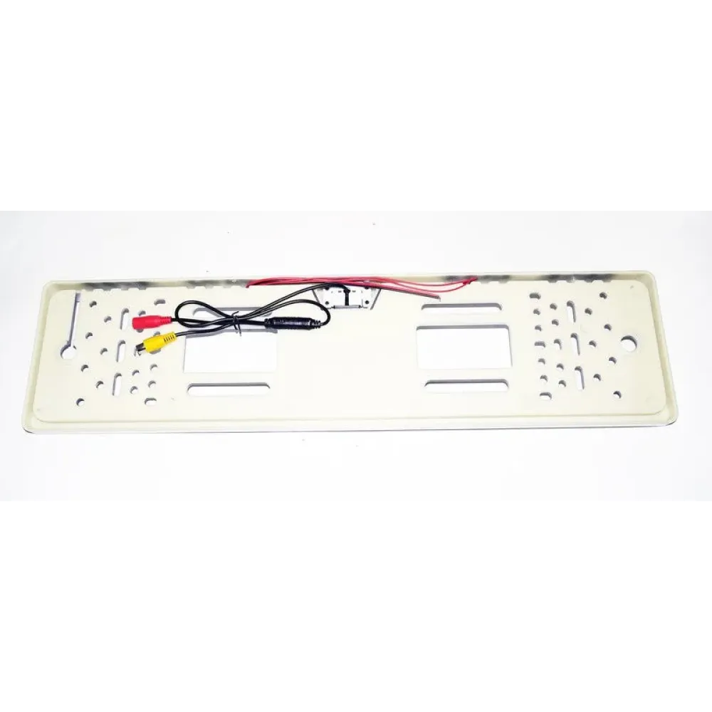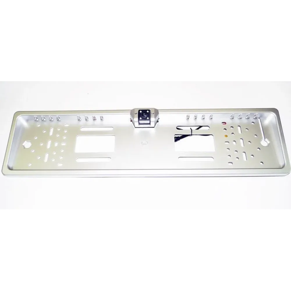 Камера в номерной рамке завоевала большую популярность среди автомобилистов благодаря своей универсальности. Основное ее преимущество это особенность установки. Ведь ее можно установить практически на любой автомобиль вместо рамки номерного знака. Камера в номерной рамке имеет центральное расположение камеры, что дает возможность максимально по центру получать изображение с камеры. Камера в номерной рамке работает на базе сенсора CCD , что дает возможность работать при низком освещении без инфракрасной подсветки и также есть возможность включать 4 светодиода подсветки расположенных в углах камеры.