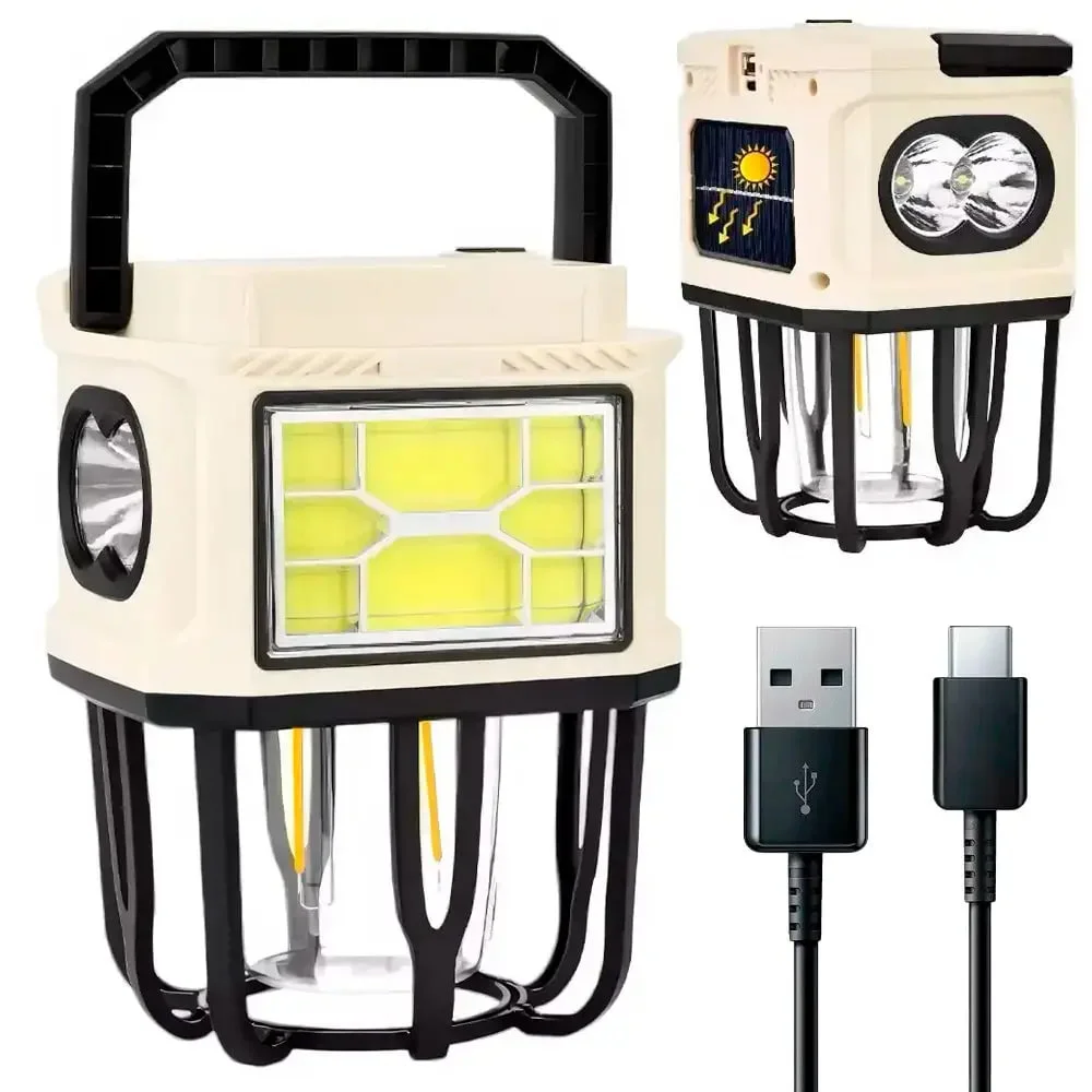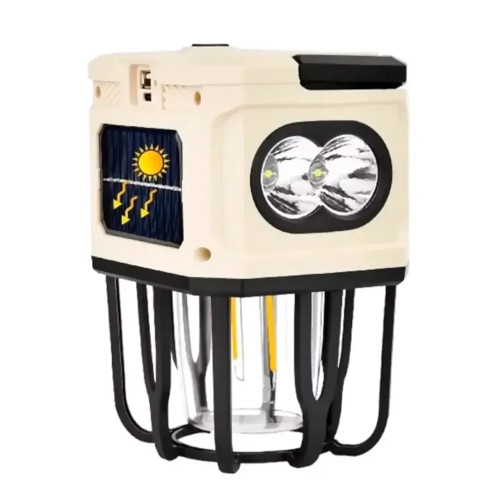 Кемпинговый аккумуляторный подвесной фонарь BL-7677B — идеальное решение для освещения ночных приключений на свежем воздухе. Оснащён солнечной батареей и встроенным аккумулятором ёмкостью 2400 мАч, он обеспечивает длительную автономную работу без частой подзарядки. Прочный корпус из ABS-пластика гарантирует надежность при дождливой погоде, ударах или падениях.
