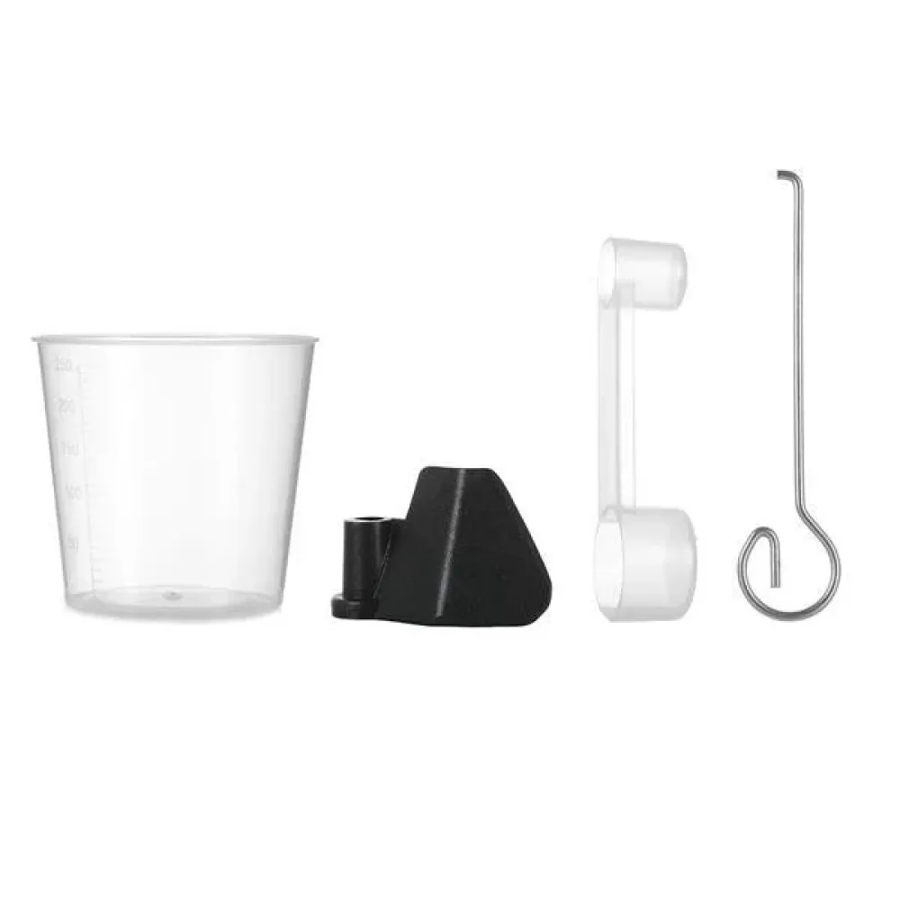 Комплектуется мерным стаканом и ложкой, крюком для извлечения лопасти (в случае застревания в готовом хлебе), лопастью тестомешалки, а так же книгой рецептов.