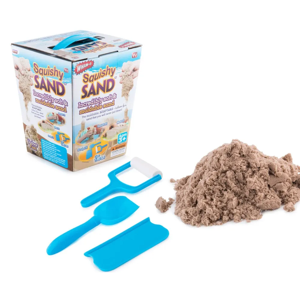 Хотите поднять настроение ребенку и развить в нем творческую личность? Живой песок развивает мелкую моторику, оставляя руки сухими и чистыми. Вы можете сделать для ваших детей песочницу прямо дома на столе. Кинетический песок - это обычный песок с небольшой частью связующего полимера в составе, поэтому он всегда остается вязким и напоминает песок на пляже. Развивает и развлекает! Ваш маленький строитель может в любое время строить замки из песка или лепить куличики. Небольшая баночка песка отлично подойдет для ознакомления с новой игрой. Малыш сможет познавать новое и развивать свои творческие навыки. Кинетический песок не прилипает к предметам и не имеет специфического запаха, что так важно для детей-аллергиков. Он не теряет своих свойств, не сохнет и абсолютно безопасен. Регулярные игры с кинетическим песком помогают развивать у малыша моторику, усидчивость, фантазию и воображение. Для игры с Squishy Sand не требуются инструкции и руководства. С помощью кинетического песка вы сможете построить замок, лепить куличи и играть с бульдозерами и экскаваторами. И все это можно делать круглый год, не выходя из дома. Антистресс! От него в восторге не только дети, но и взрослые! Улучшает чувственное восприятие и креативность. Прекрасно снимает стресс и обладает терапевтическим эффектом. Все больше детей имеют у себя дома песочницы с кинетическим песком и могут воплотить в жизнь свои маленькие фантазии и проекты. Важным преимуществом является то, что Kinetic Sand не сохнет, легко собирается с поверхности и играть с ним можно снова и снова. Состав: Кинетический песок состоит из 98% натурального, не дробленного песка и 2% специального связующего, который по своей сути является силиконом. В зависимости от партии песок может быть более крупной или более мелкой фракции, но в целом он как песок в песочнице, разница лишь в том, что он очищен и отсортирован по фракции. Совершенно чистый. Абсолютно безопасный. Вес: 500 г Комплектация: вязкий песок, 3 инструмента для игры с песком.