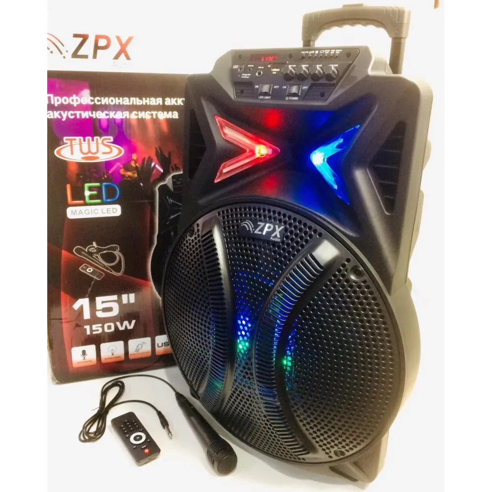Колонка аккумуляторная 15 дюймов Акустика музыкальная с микрофоном мобильная на колесиках ZPX-7783 150W