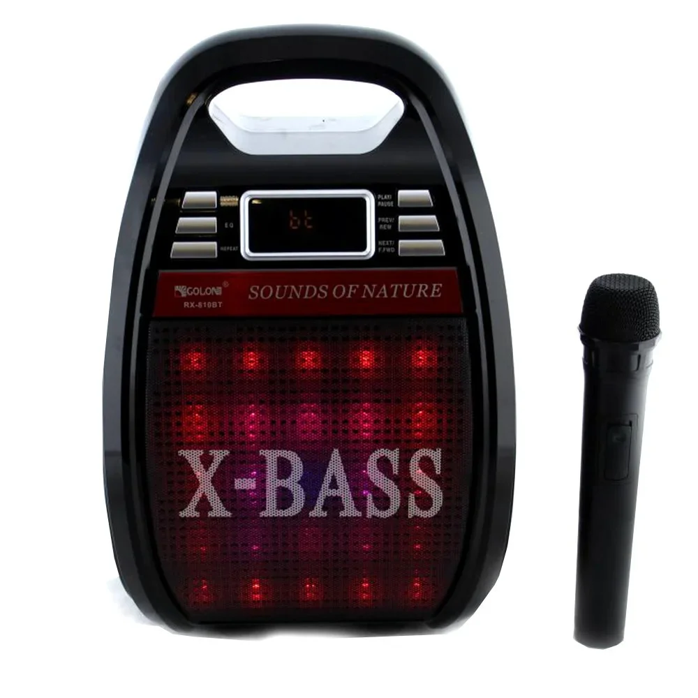 - Есть также аудиовыход 3,5 мм для подключения любых наушников. изюминкой данной модели есть наличие беспроводного микрофона, который позволит Вам превратить музыкальную колонку в караоке центр!