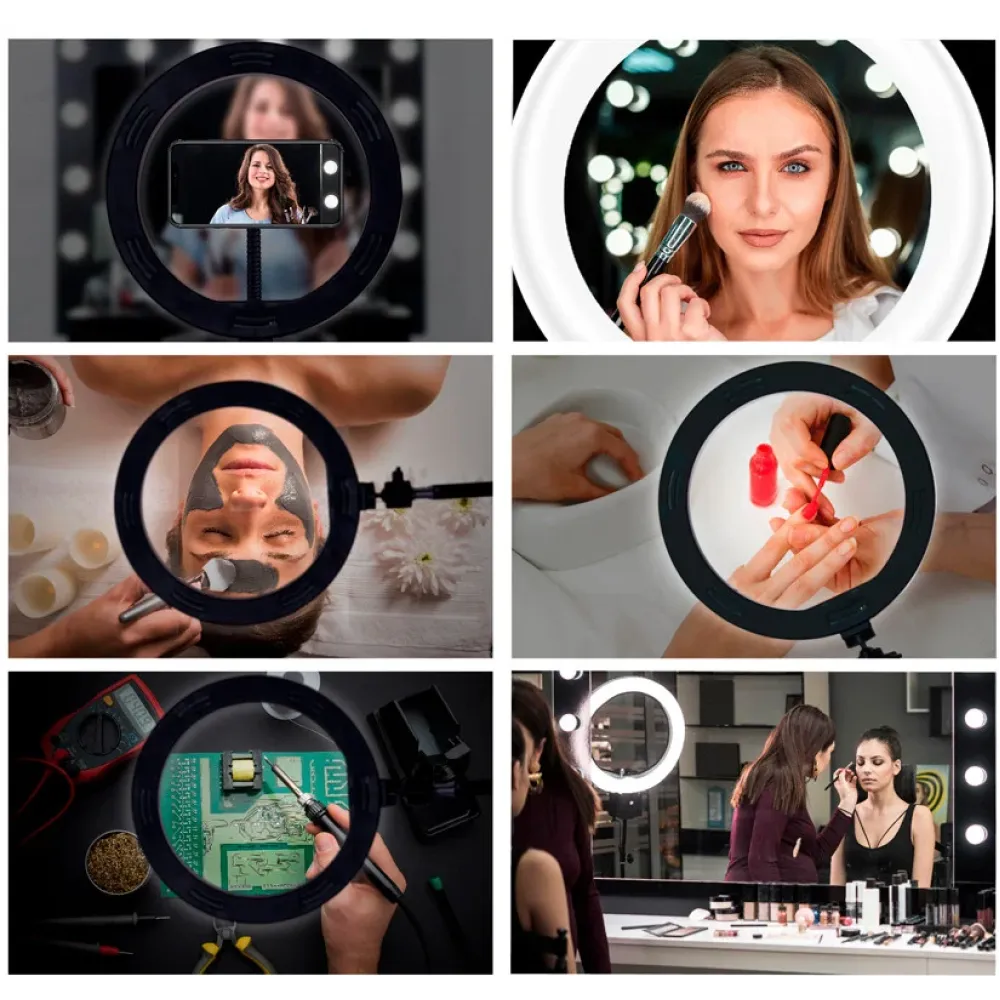 В набор блогера 2 в 1 входит: кольцевая Led лампа с держателем, держатель для смартфона.