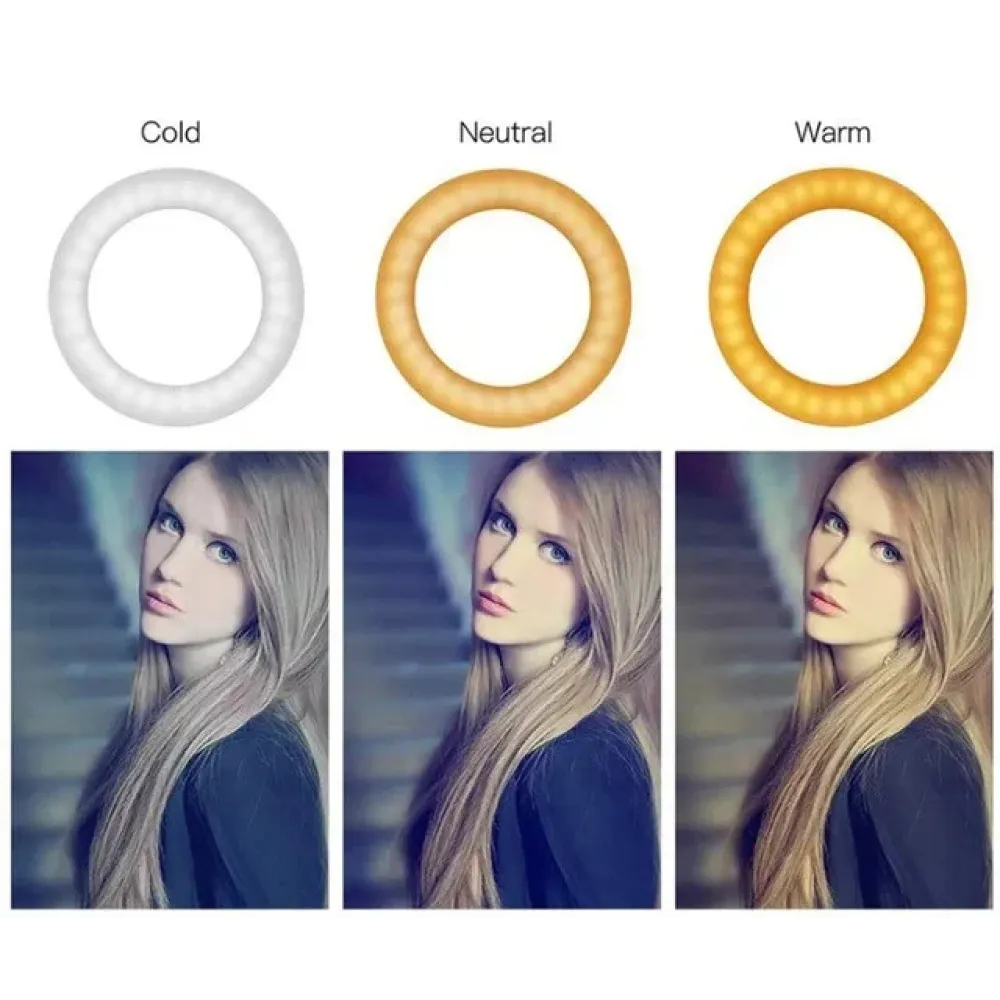 Позволяет настроить освещение и направить его на конкретный объект, для того что бы ваши видео и фото были идеальными. Внешний диаметр лампы – 9 см, внутренний – 5 см. Лампа для блогера имеет 3 типа освещения: холодный, теплый и нейтральный, а также 10 режимов интенсивности света в каждом из типов освещения. Диапазон температур – 2200-6500К.