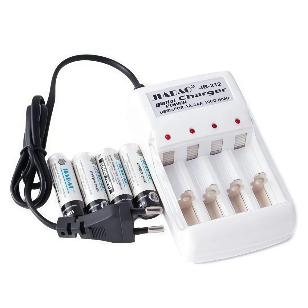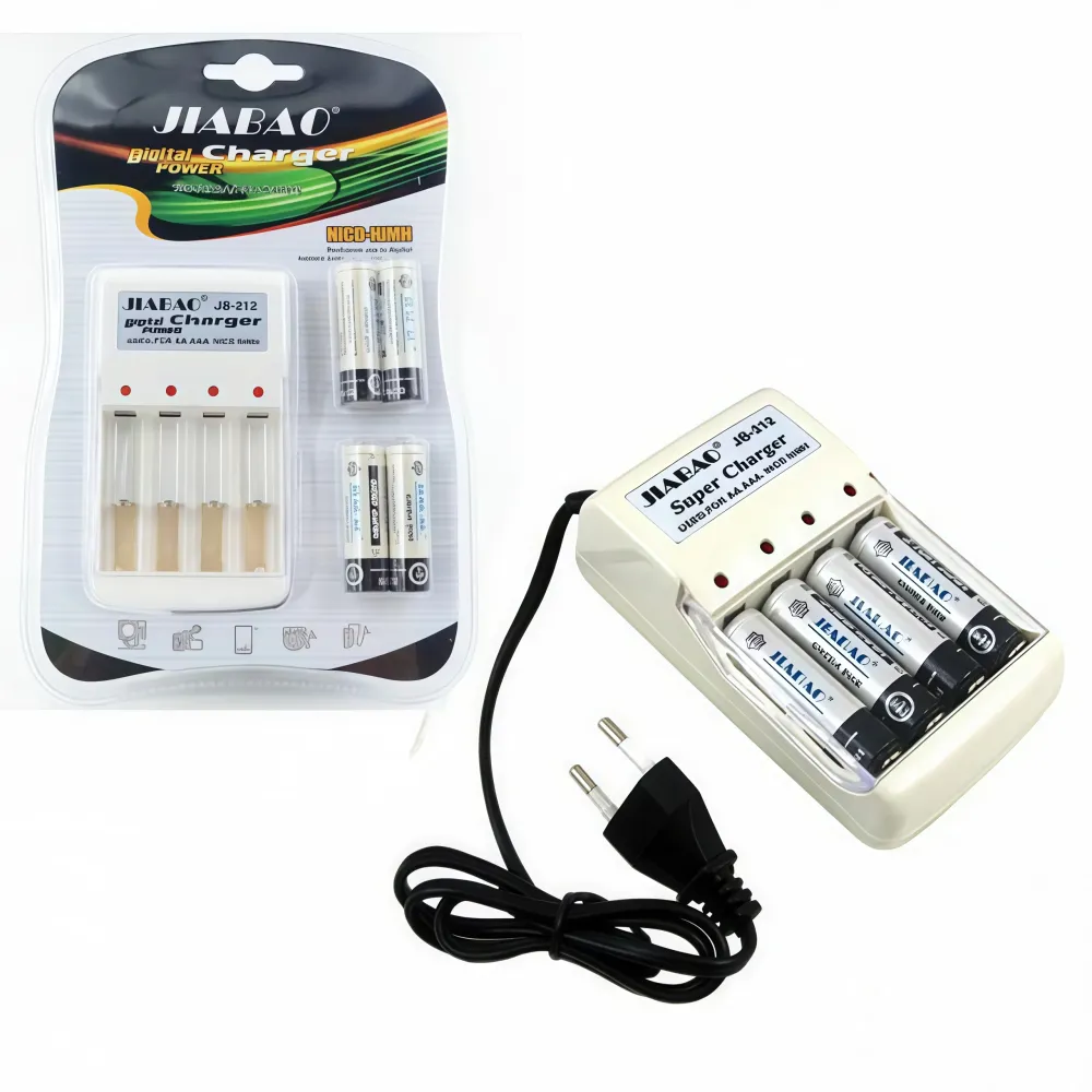 Комплект аккумуляторных микроэлементов 4 шт + зарядное устройство • НАБОР 4 аккумулятора с зарядным устройством JIABAO JB-212