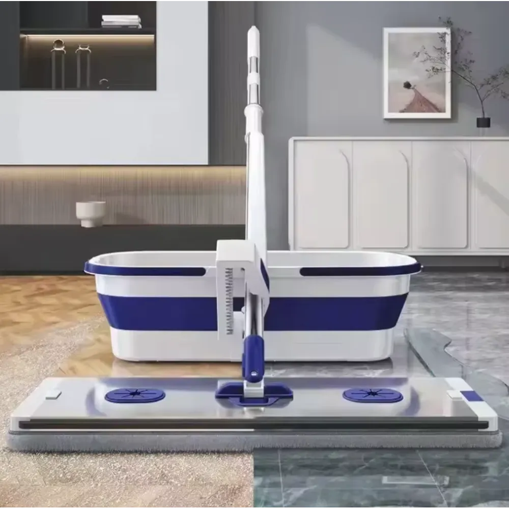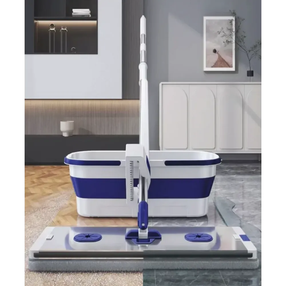 Комплект для мытья полов 2 в 1 — это всё, что нужно для быстрой, эффективной и комфортной уборки. В него входит эргономичная швабра с плоской насадкой и компактное складное ведро с двумя отсеками, позволяющее легко отжимать и смачивать насадку, не пачкая рук.