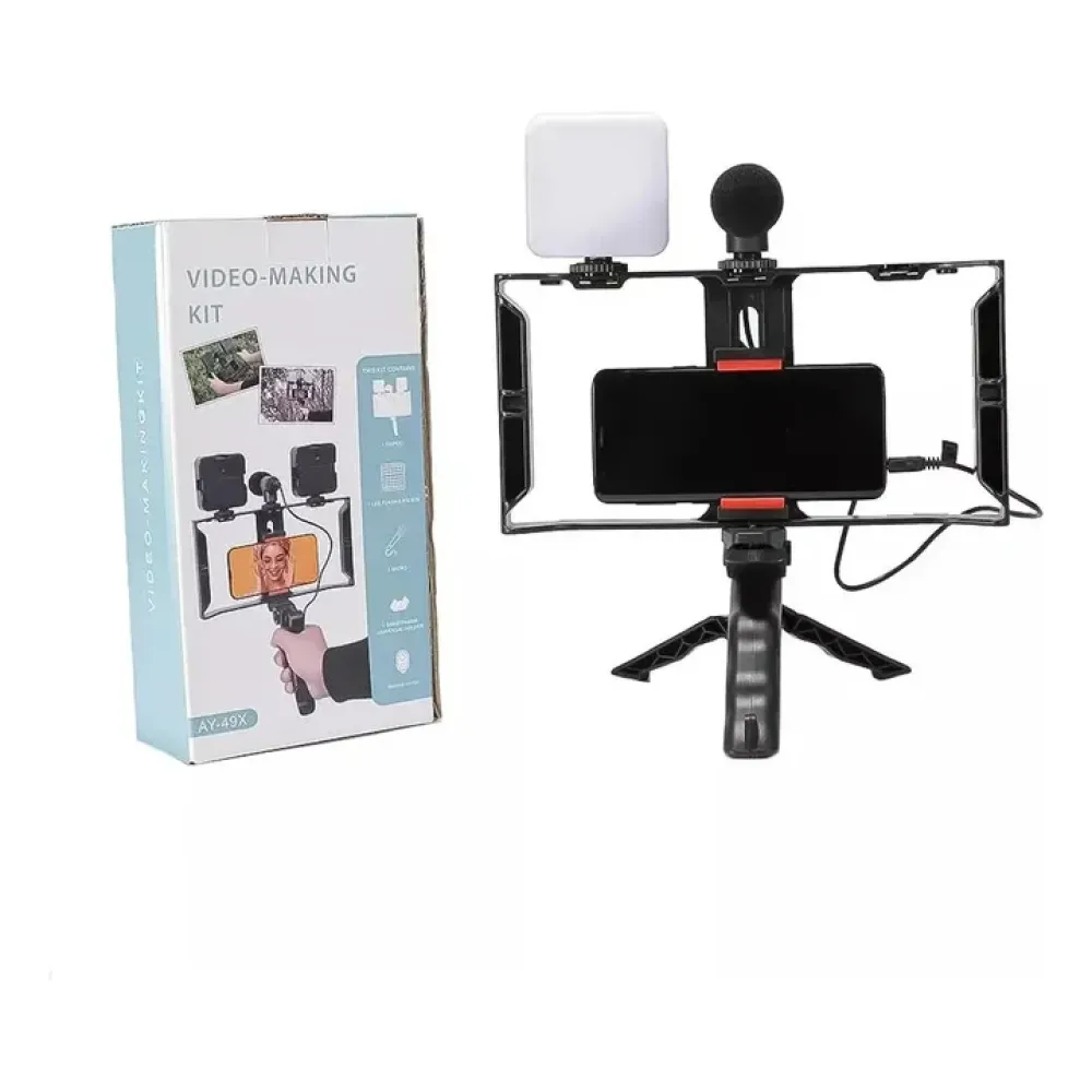 Комплект для влогинга Video Making Kit AY49X для смартфона • Набор для блогинга AY49X для смартфона с микрофоном и светом