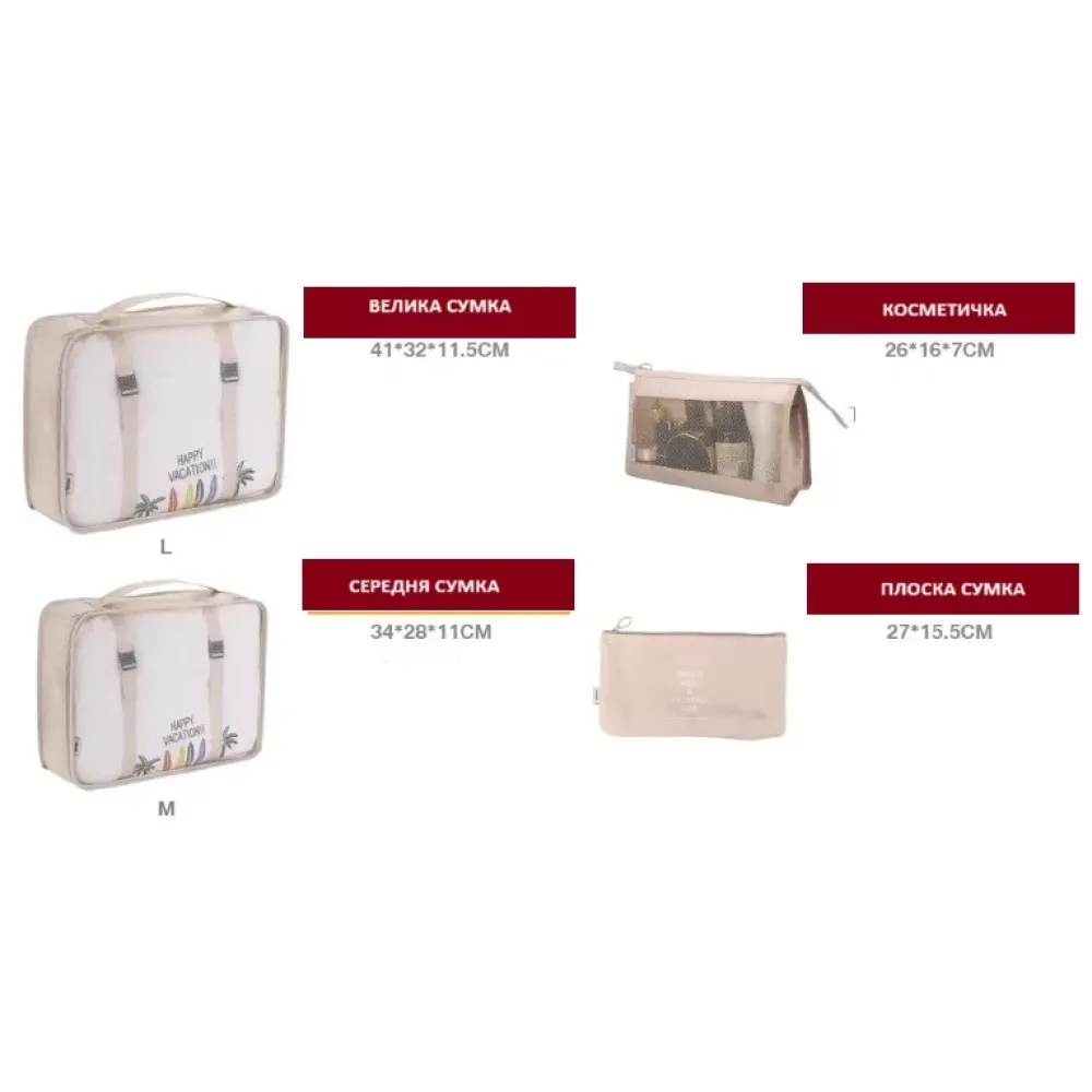 Путешествуйте с комфортом и порядком с этим универсальным комплектом органайзеров! Включает несколько удобных моделей для одежды, личных вещей и косметики. Каждый органайзер снабжен молнией, удобными ремешками для фиксации вещей и сетчатой крышкой для лучшей вентиляции. Модели имеют компактные размеры и легко складываются, не занимая много места в багаже. Все органайзеры оборудованы ручками для удобного переноски, что делает их идеальными для путешествий и командировок. Простой способ организовать пространство в чемодане и всегда иметь под рукой все необходимое!