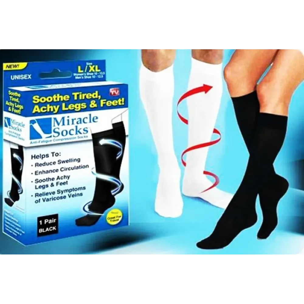 Благодаря уникальной структуре, компрессионные носки массируют ваши ноги, когда вы двигаетесь. Miracle Socks буквально оживляют усталые ноги, улучшают кровообращение и уменьшают отёчность. Снимая напряжение с сосудов и мышц, они уменьшают симптомы варикозной болезни и снижают риск появления сосудистых «звёздочек». Испытайте долгожданное облегчение боли вместе с Miracle Socks!