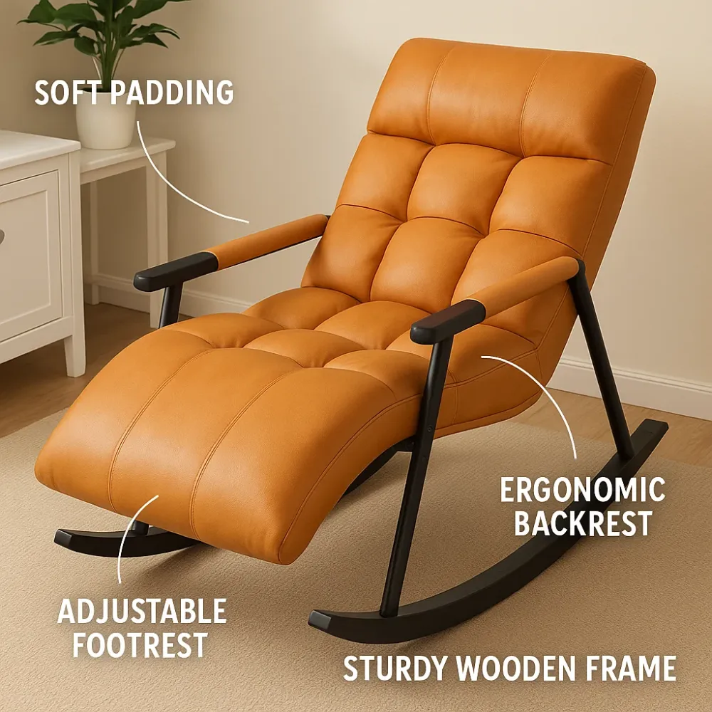 Кресло качалка для отдыха с регулируемой подставкой для ног • Мягкое кресло с анатомической спинкой