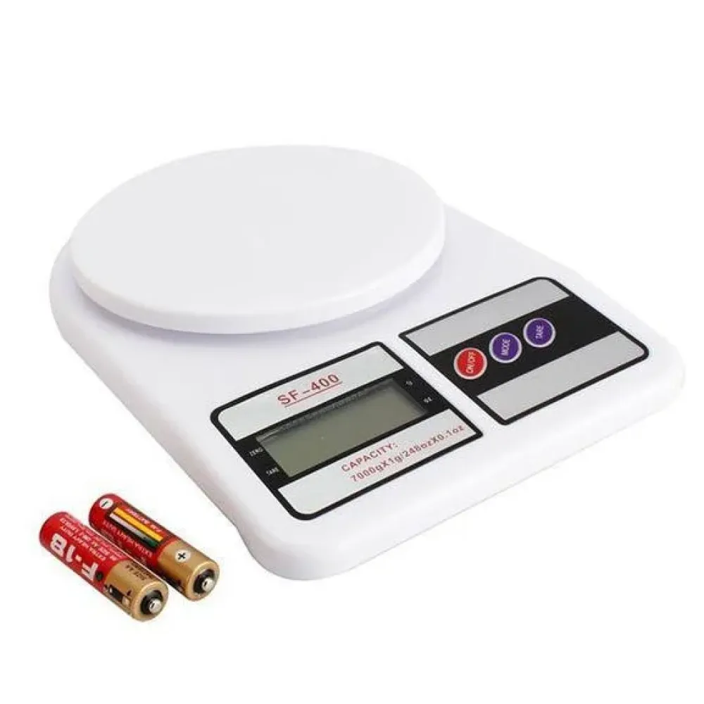 Кухонные электронные весы работают весы от двух пальчиковых батареек. Если Вы долго не пользуетесь весами, они автоматически отключаются спустя некоторое время. Прибор очень легок и компактен. Большой цифровой дисплей хорошо отображает информацию, цифры довольно крупные. Вы можете выбрать желаемую меру измерения ― граммы либо унции. также в весах предусмотрена крайне удобная функция тарирования. Функционал весов Electronic Kitchen Scale SF-400 (интуитивно простой, поэтому Вам понадобится всего несколько минут, чтоб "подружиться" с прибором.