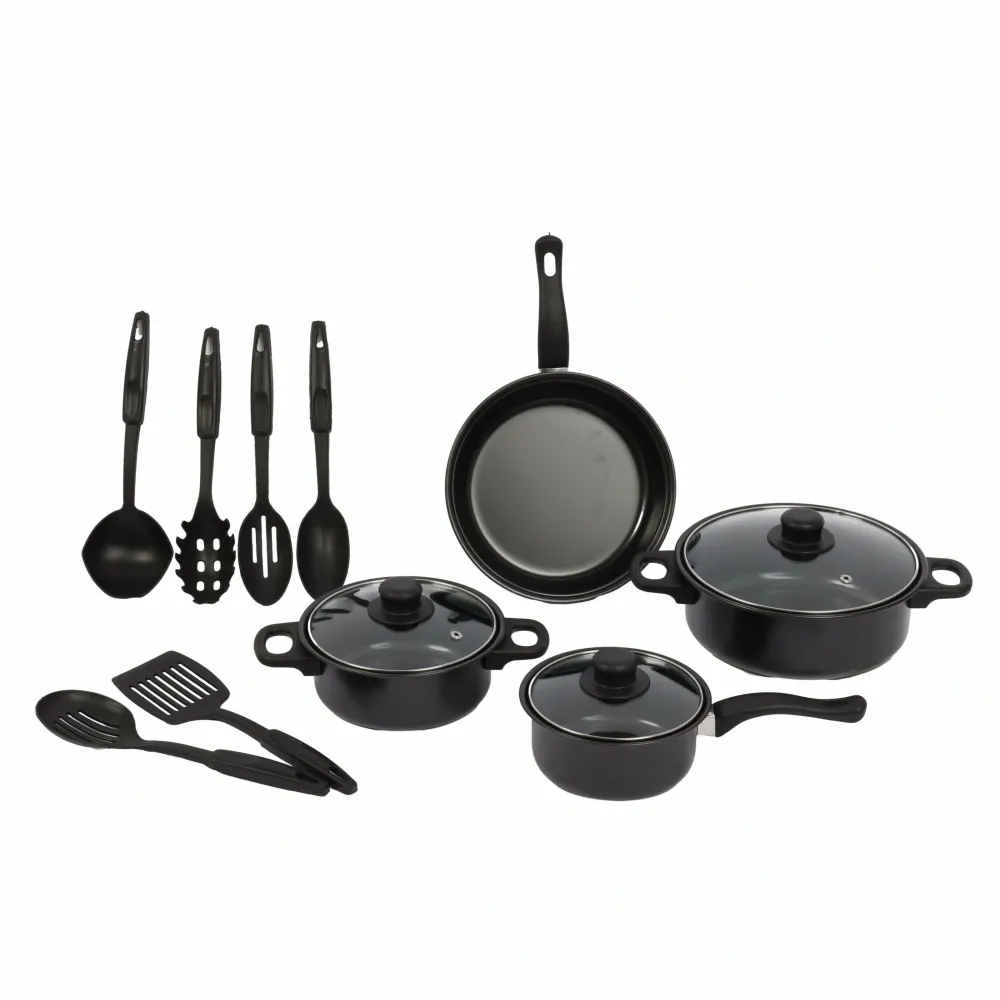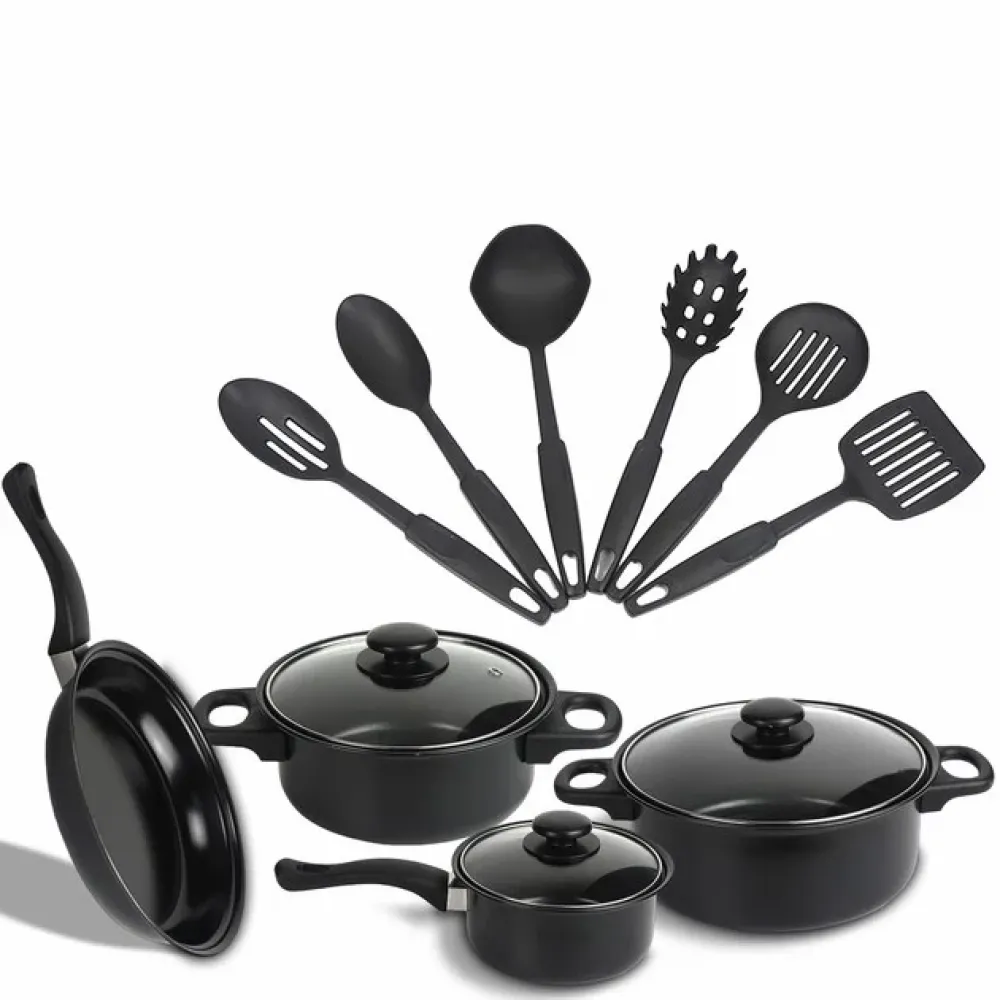 Обогатите свою кухню с нашим смешанным набором посуды 13 в 1, включающим кастрюли с крышками, сковороду и кухонные принадлежности. Этот универсальный комплект станет незаменимым помощником в приготовлении разнообразных блюд. Набор включает три кастрюли с крышками, сковородку и шесть кухонных инструментов, обеспечивая все необходимое для повседневной готовки.