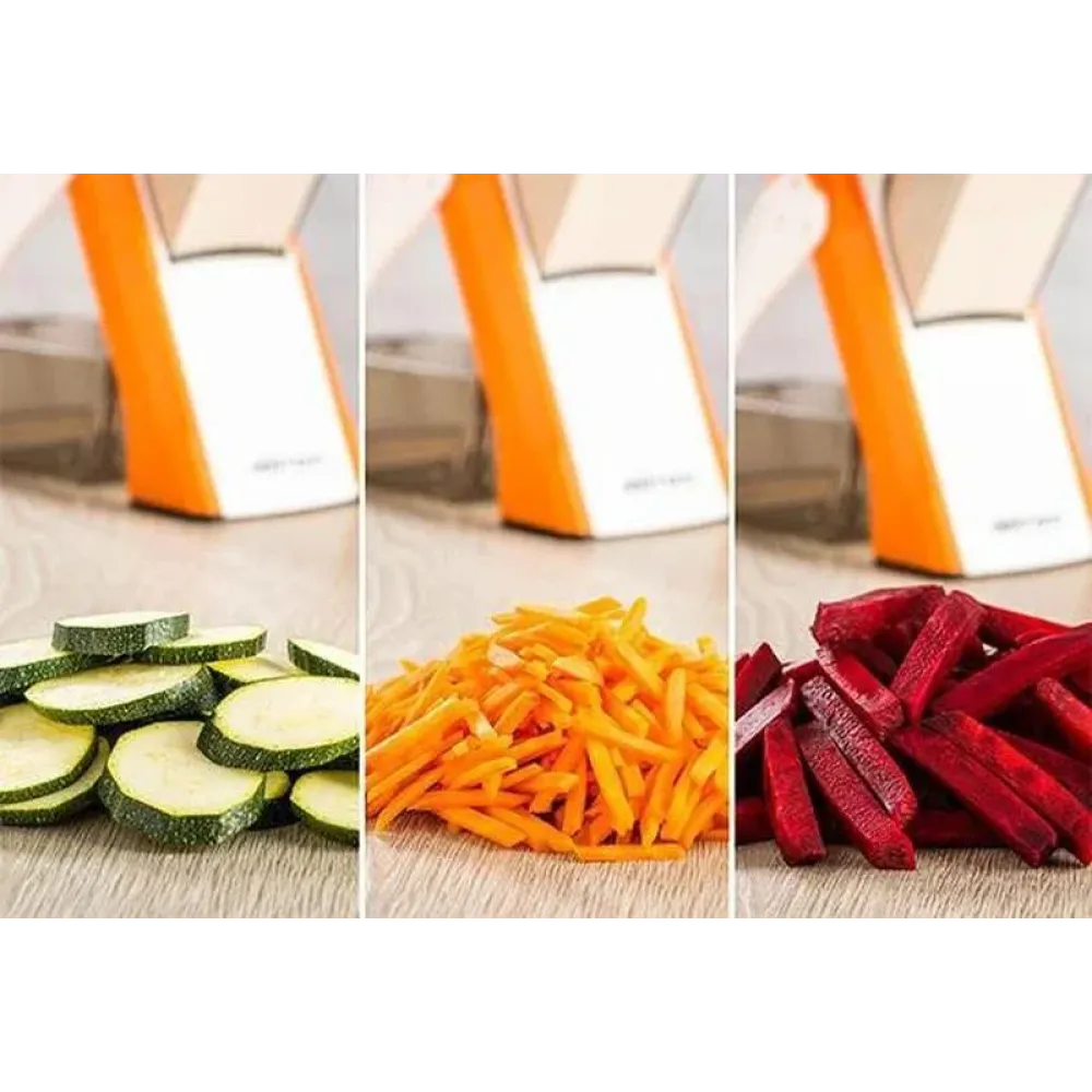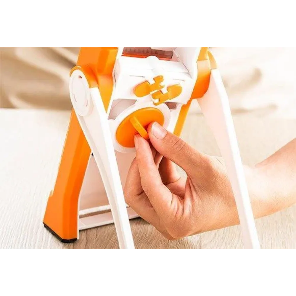 Слайсер также имеет абсолютно уникальный дизайн, и самое главное: он на 100% обезопасит вас от порезов. Благодаря 24 настройкам толщины нарезки в диапазоне от 0,2 до 8,0 мм и 2 различным стилям нарезания,
