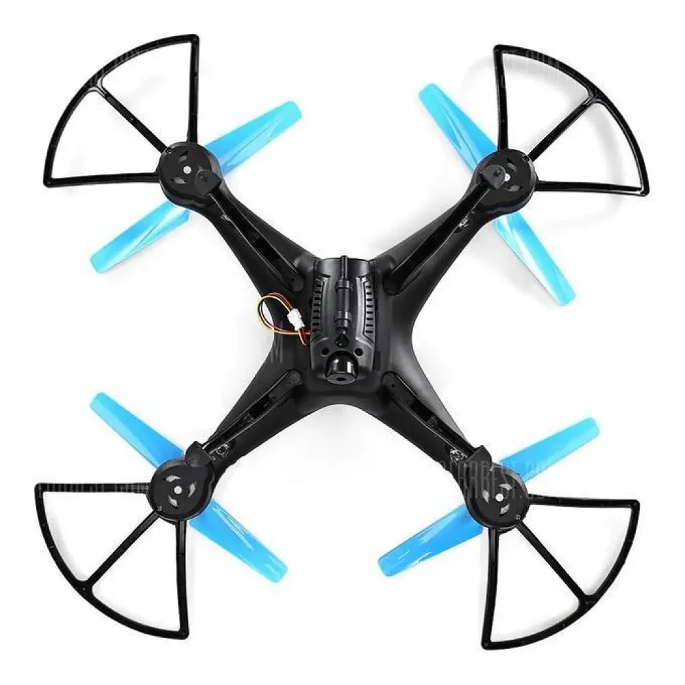 Комплектация: 1 х Квадрокоптер ( аккумулятор в комплекте ), 1 x Передатчик, 1 x Слинг, 1 x Зажим мобильного телефона, 4 x Протектор пропеллера, 4 х Шасси, 4 x Запасной пропеллер, 1 х USB кабель, 1 х Отвертка, 1 х Пакет аксессуаров, 1 х Китайско-английская инструкция