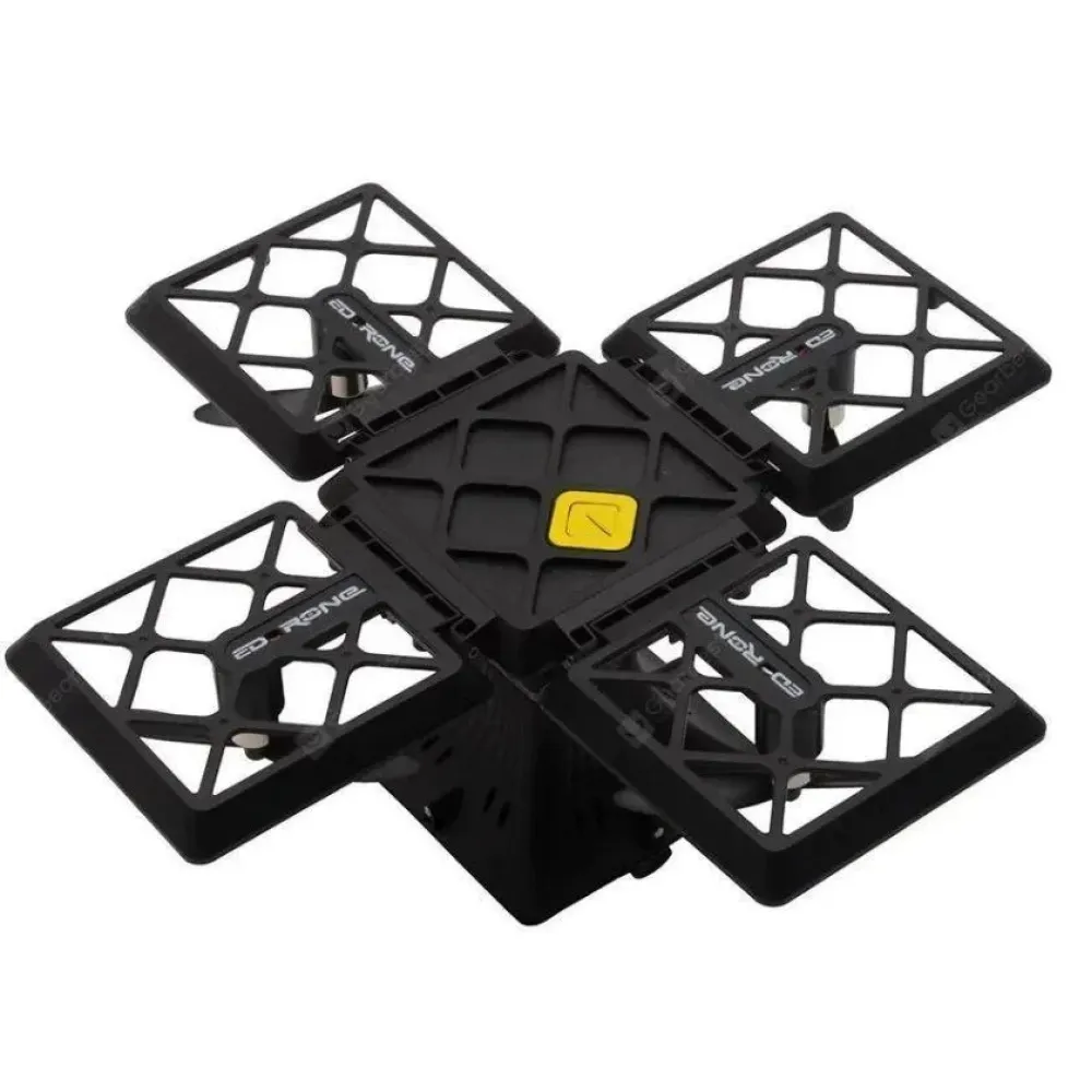 Маленький радиоуправляемый дрон-куб. Тут "крылья" игрушки раскрываются и закрываются вручную. Black Knight Cube 414 один из самых странных беспилотных летательных аппаратов - он выглядит на первый взгляд как кубик рубик, но как только он поднимается, и «крылья» с пропеллерами становятся на свои места, то сразу становится понятно, что перед вами полноценный квадрокоптер.