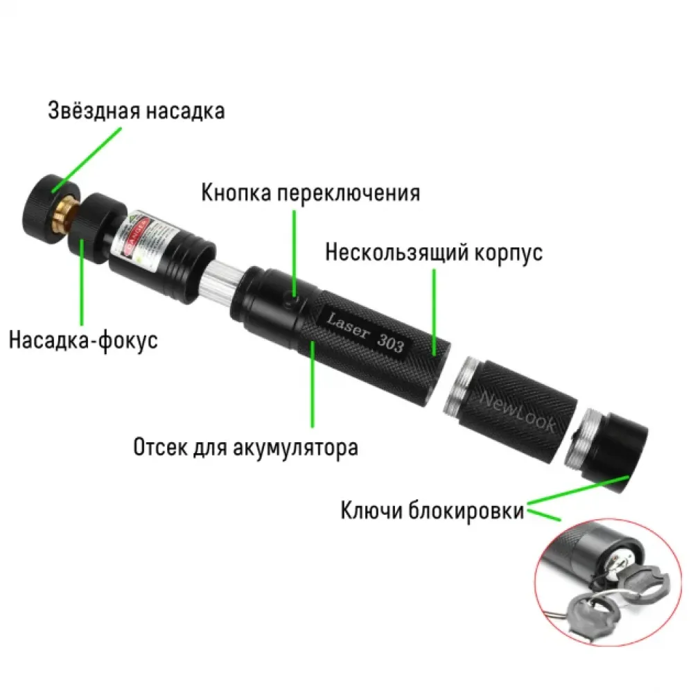 Заказывайте Лазерная указка высокой мощности Laser pointer YL-303 ∙ Мощный зеленый лазер – луч с аккумулятором прямо сейчас на нашем сайте! |