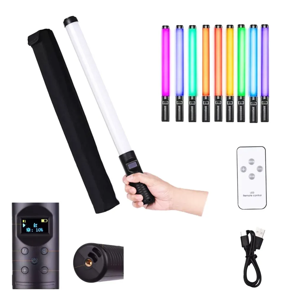 Эта портативная светодиодная лампа led stick RGB имеет высокую яркость до 2000lm, большой угол освещения 180 °, свет очень яркий, стабильный, ровный и не слепящий. Он совместим со многими аксессуарами для фотосъемки, такими как штативы, моноподы, световая подставка и многое другое; подходит как для удержания в руке, так и для фиксации на другом оборудовании.