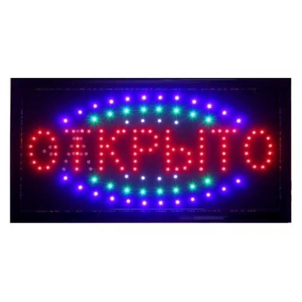 Светодиодная вывеска LED табло идеально подходит для магазинов, кафе, баров, пиццерий. Яркая анимация. Светодиоды разных цветов: красный, синий. Светодинаический эффект движения светодиодов по вывеске.
