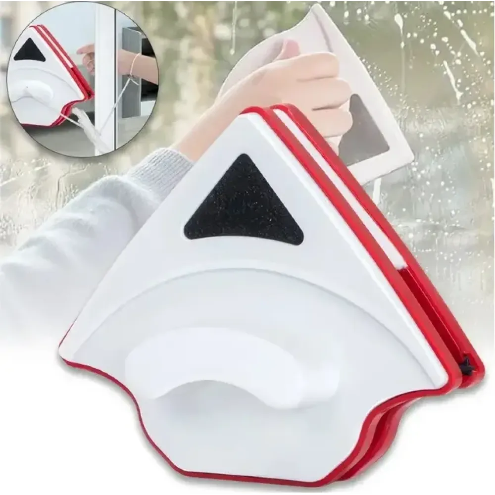 Магнитная щетка для мытья окон 3-32 мм • Двусторонний стеклоочиститель с треугольной формой и страховочным шнуром